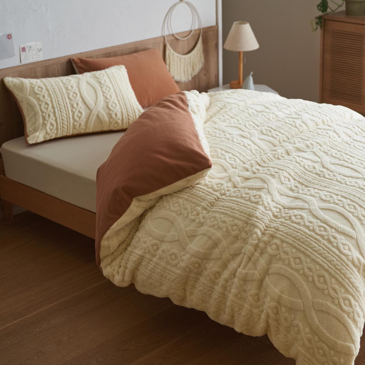 アイボリーニット柄がかわいい、ふわモコあったか掛け布団カバーです。