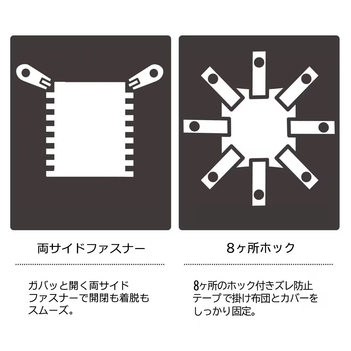 両サイド全開ファスナーでガバッと開くからカバーを取り替える時間を大幅に短縮!