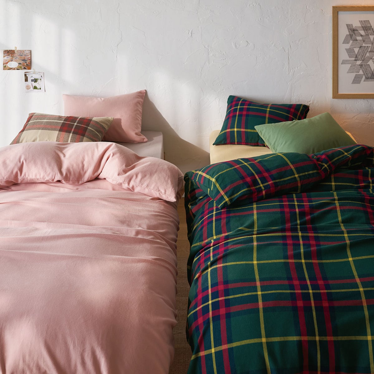 (左から)ピンク、カーキ ※商品は枕カバー(無地)です。やわらかな綿100%ネル素材で気持ちもほっこり。