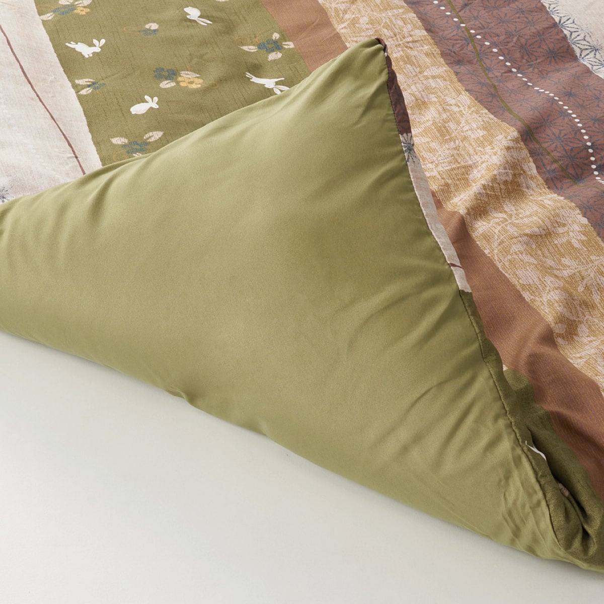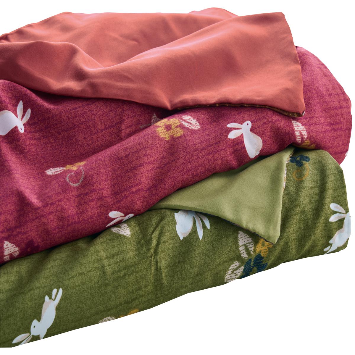 和風うさぎ柄がアクセントのこたつ掛け布団カバーです。優しい肌ざわりの微起毛加工で、こたつ布団の汚れ防止にお役立ち。裏面は無地カラーでシンプルに。着脱簡単なファスナー式なので、付けはずしもラクラクです。洗濯機で洗えるので、いつも清潔にお使いいただけます。