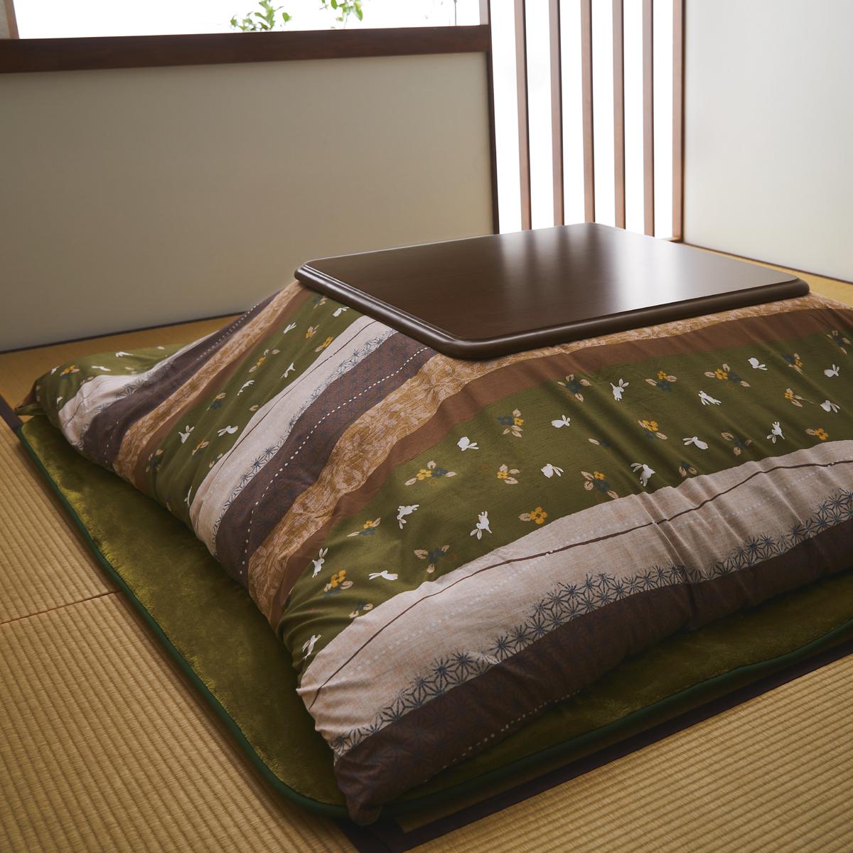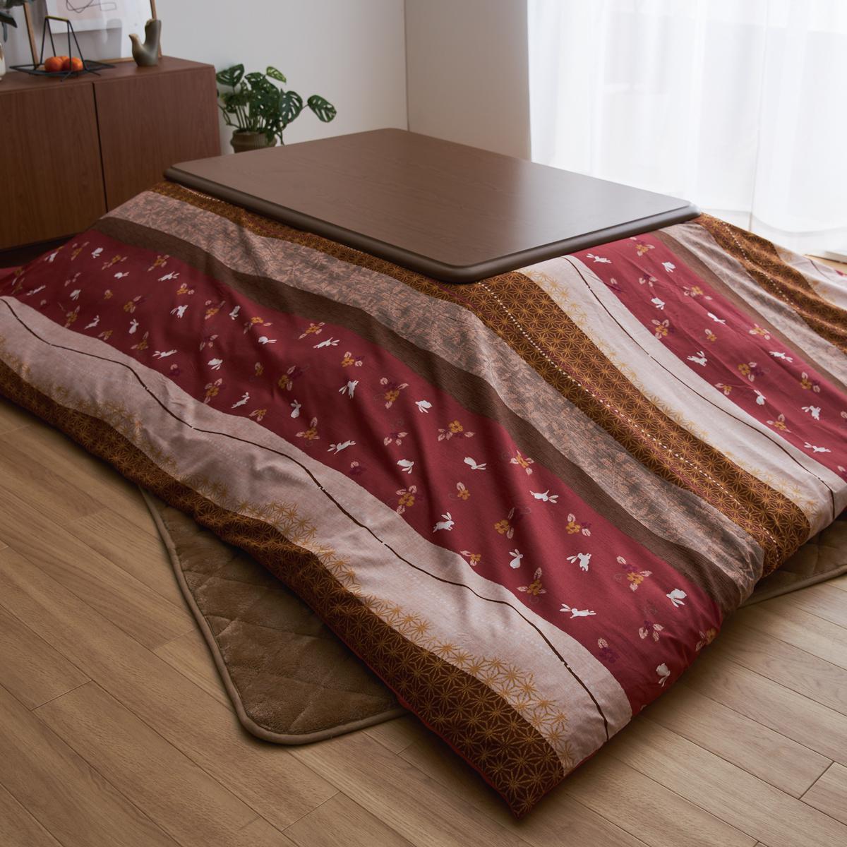 うさぎ柄で和みの空間を演出。こたつ布団の汚れ防止になるこたつ掛け布団カバーです。
