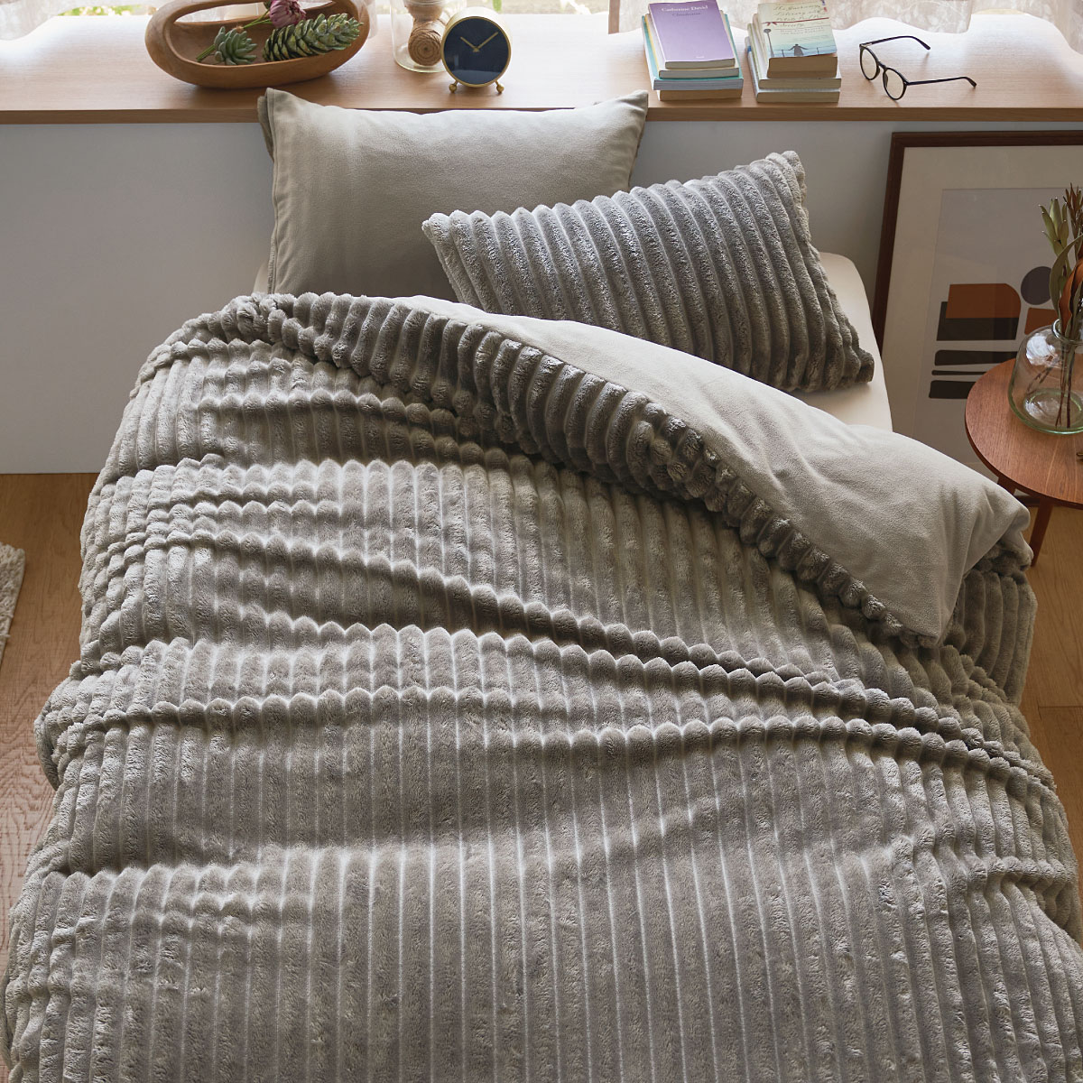 コーデュロイ風のもこもこがやさしく、気持ちいい。この冬にぴったりなあったか枕カバーです。