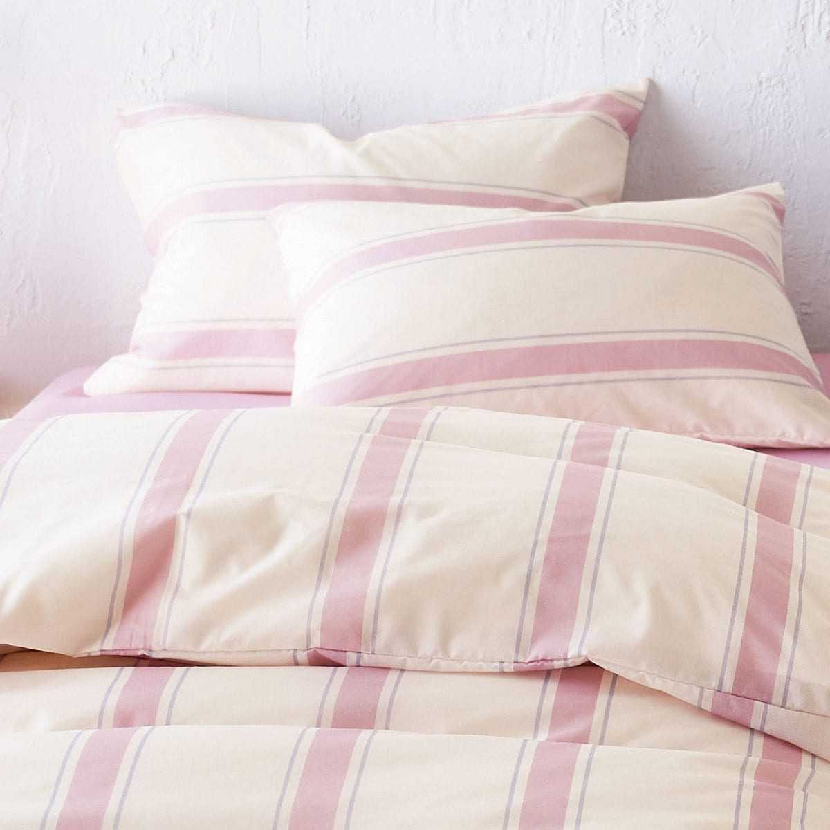A (ストライプ柄/ピンク)ガンガン洗えて、乾きも速い! 綿混素材の枕カバーです。