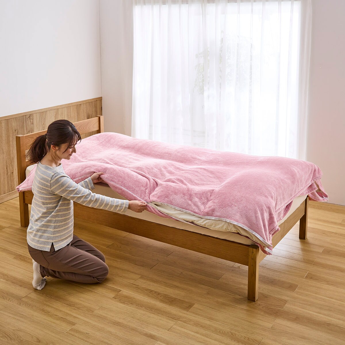 面倒なカバーの交換がとっても簡単にできるガバッと簡単掛け布団カバーに毛布素材が新登場。これさえあれば、面倒なあったかカバーの交換もらくちん♪