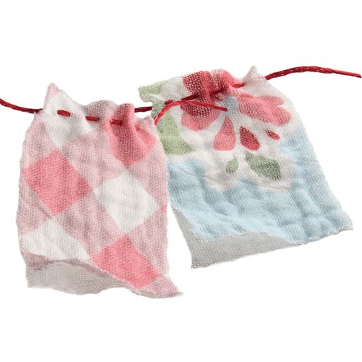 ピンク系表はピンク地にブルーの花柄、裏はブルーのギンガムチェック柄です。