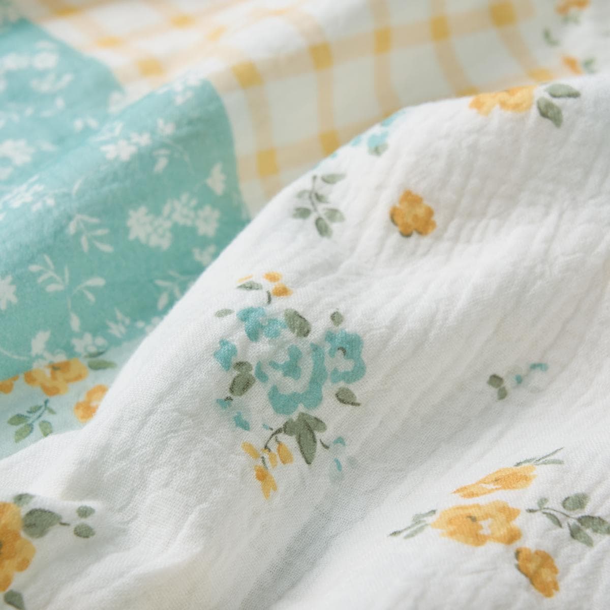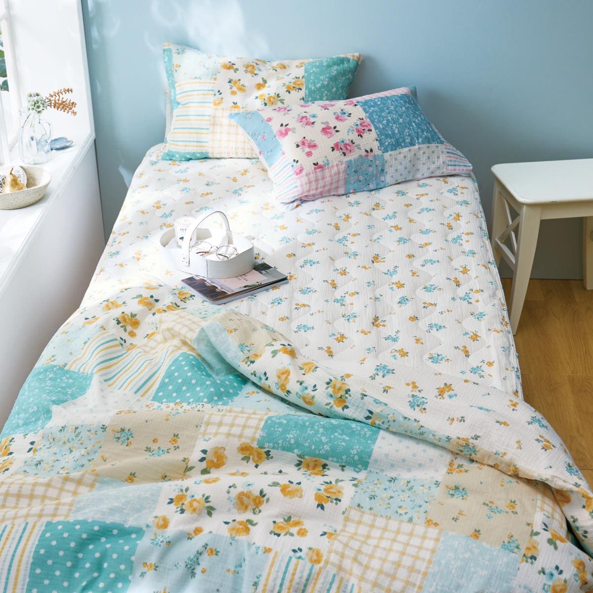 使い始めからやわらか! ふんわりやさしい綿100%ダブルガーゼの掛け布団カバーです。パッチワーク柄×小花柄の両面柄違いでお部屋をパッと明るい雰囲気に。従来品より耐久性がパワーアップしました。