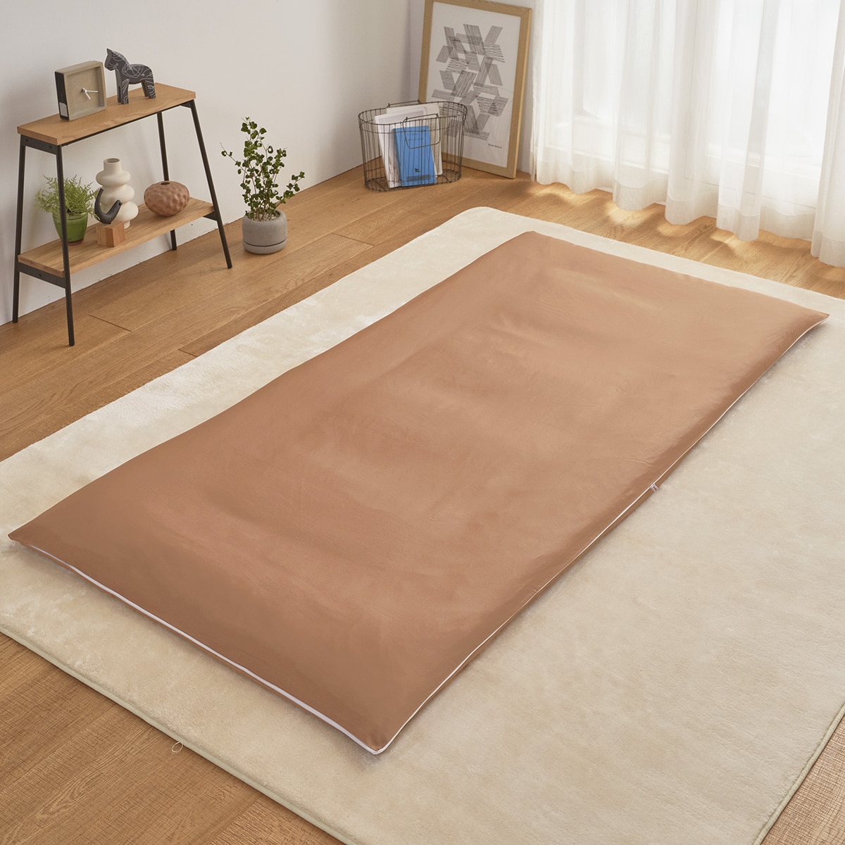 敷き布団が重くてカバーの着脱が大変、もっと気軽にカバーを交換したい…そんなお悩みにお応えした、ガバッと開く敷き布団カバーです。コの字ファスナー仕様だから敷き布団を載せてグルッとファスナーを開閉すれば簡単に着脱が可能。敷き布団をすっぽり包んで裏面までしっかりカバーします。丈夫でなめらかな綿100%素材はお洗濯に強く、季節を問わず1年中使えます。