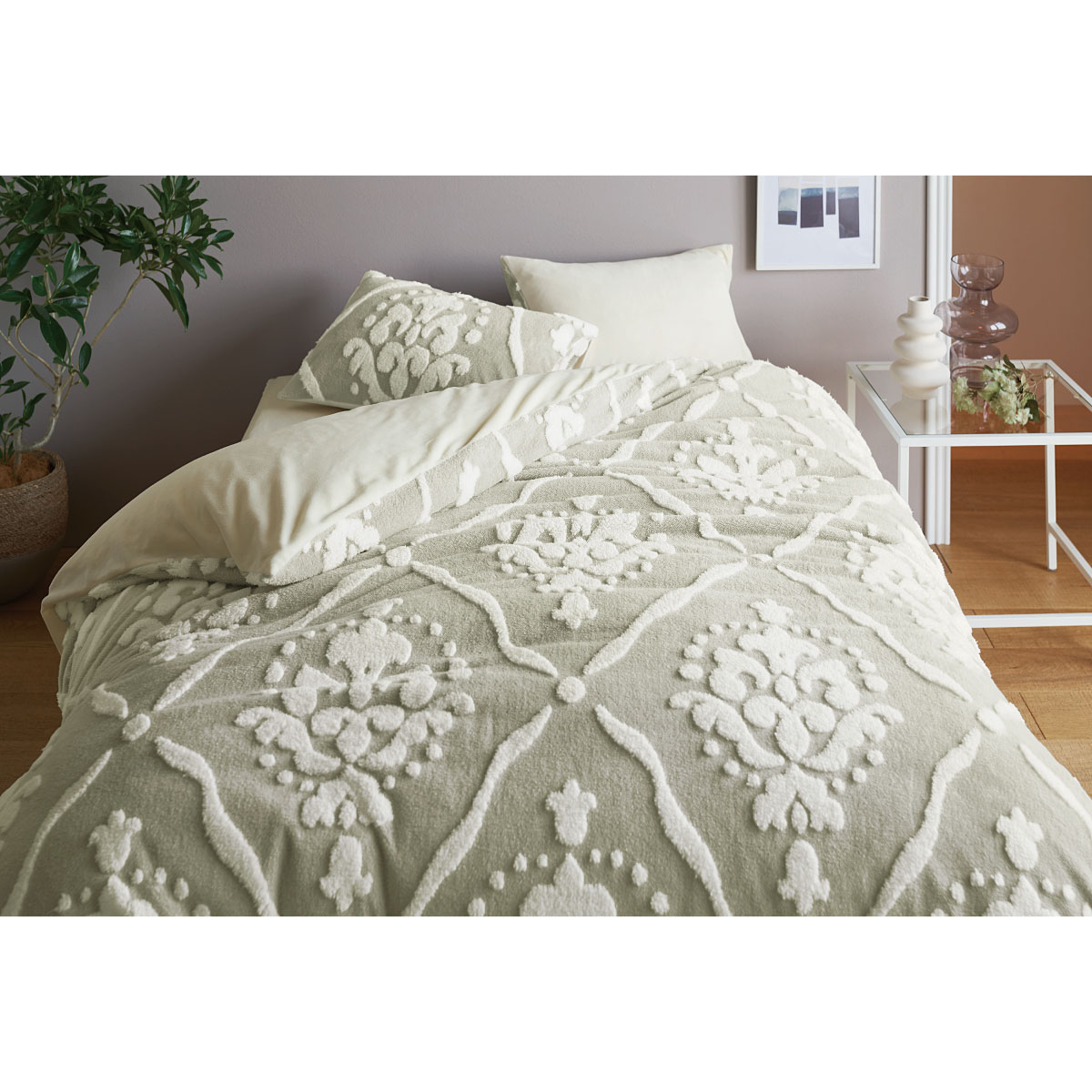 高級感を感じるアンティーク柄のあったか掛け布団カバーです。華やかさを引き立たせるジャカード柄に肌側のマイクロフリースで心も体もやすらぎを。