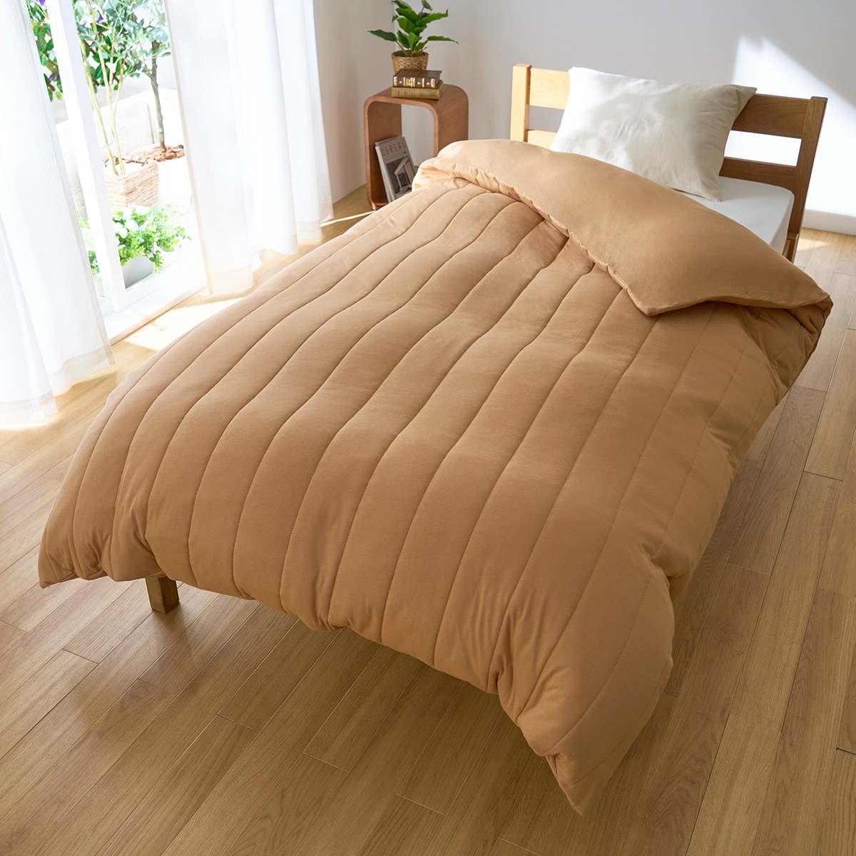 側生地は綿100%天竺ニットで快適な肌ざわり。夏は肌掛け布団として1枚で気持ちよく使えます。