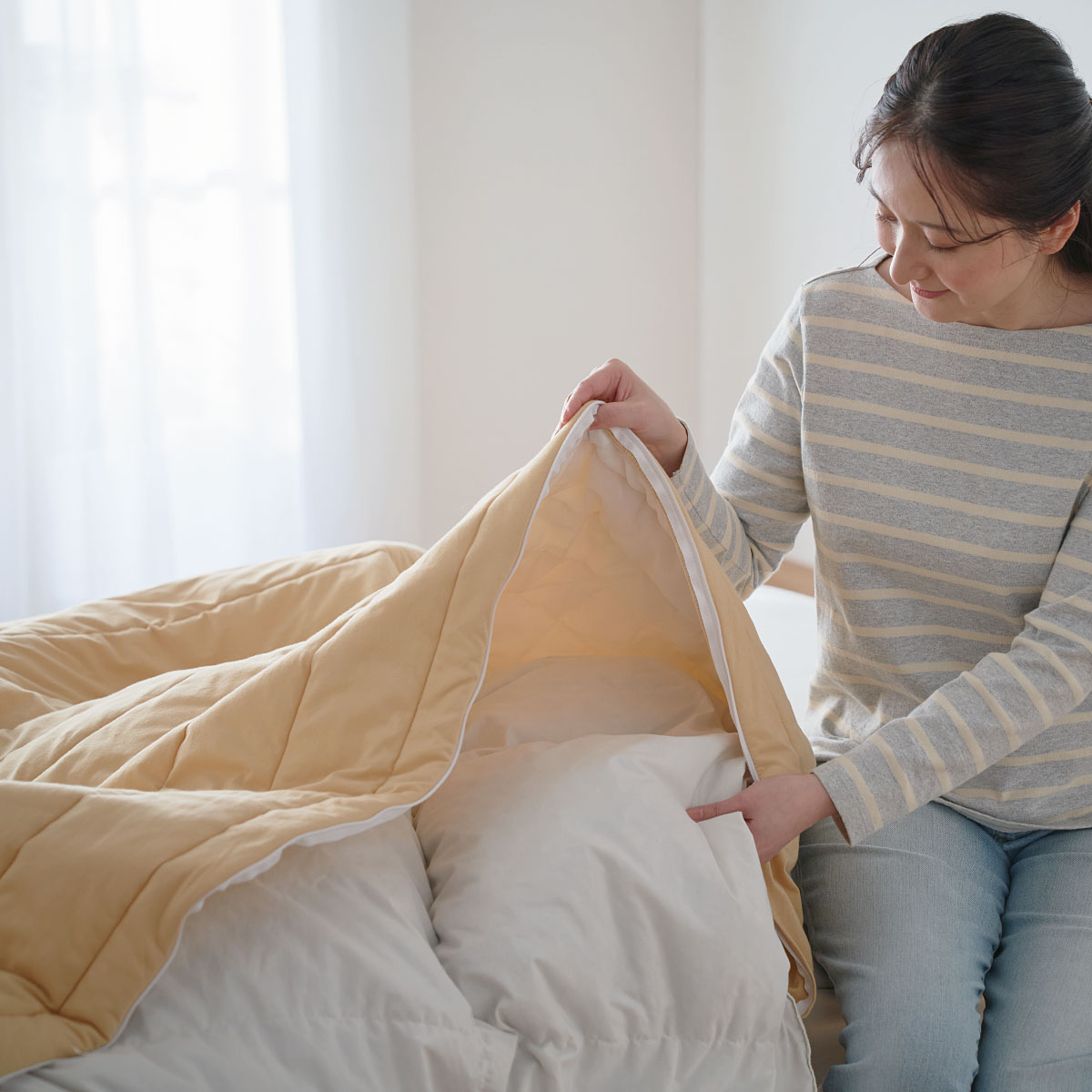 綿100%で気持ちいい! 掛け布団カバーにもなる、2WAY肌布団です。