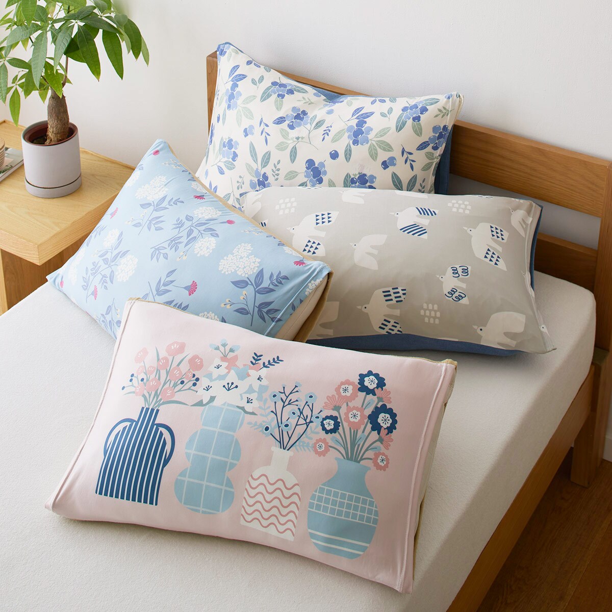 ブルー(フラワー)変形枕にもぴったりフィット。