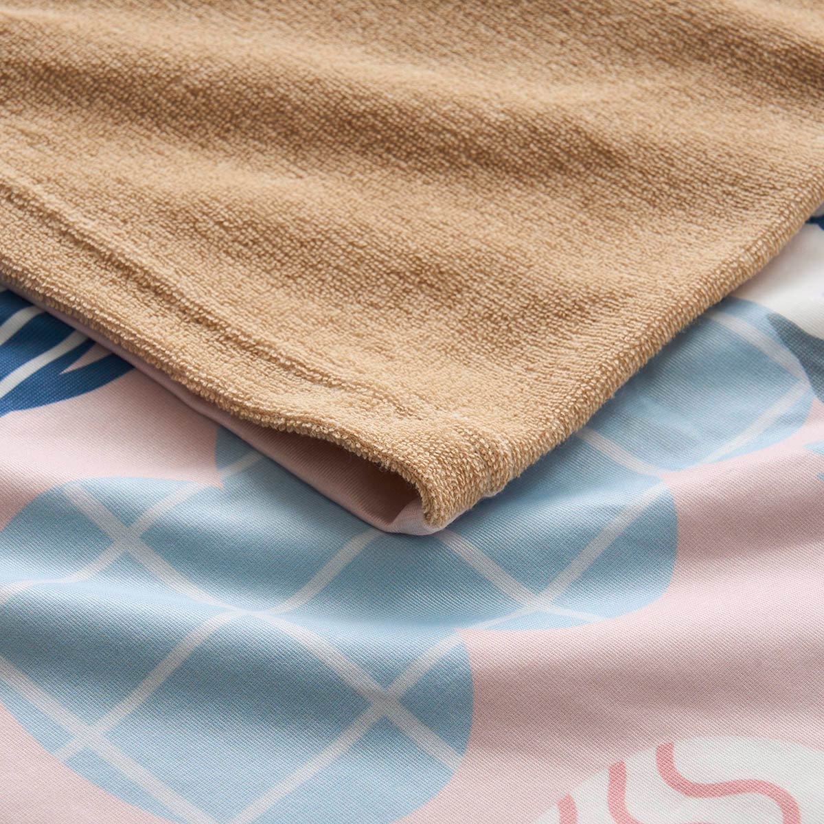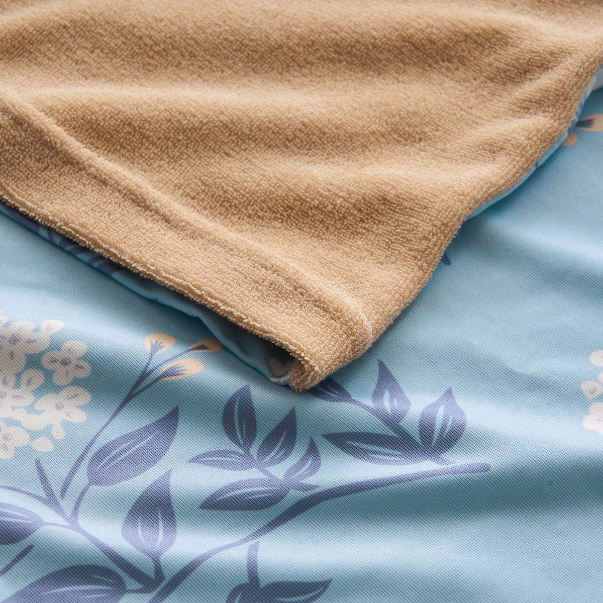 裏面生地拡大 ブルー(フラワー)ふわふわのパイル生地でサラッと快適。