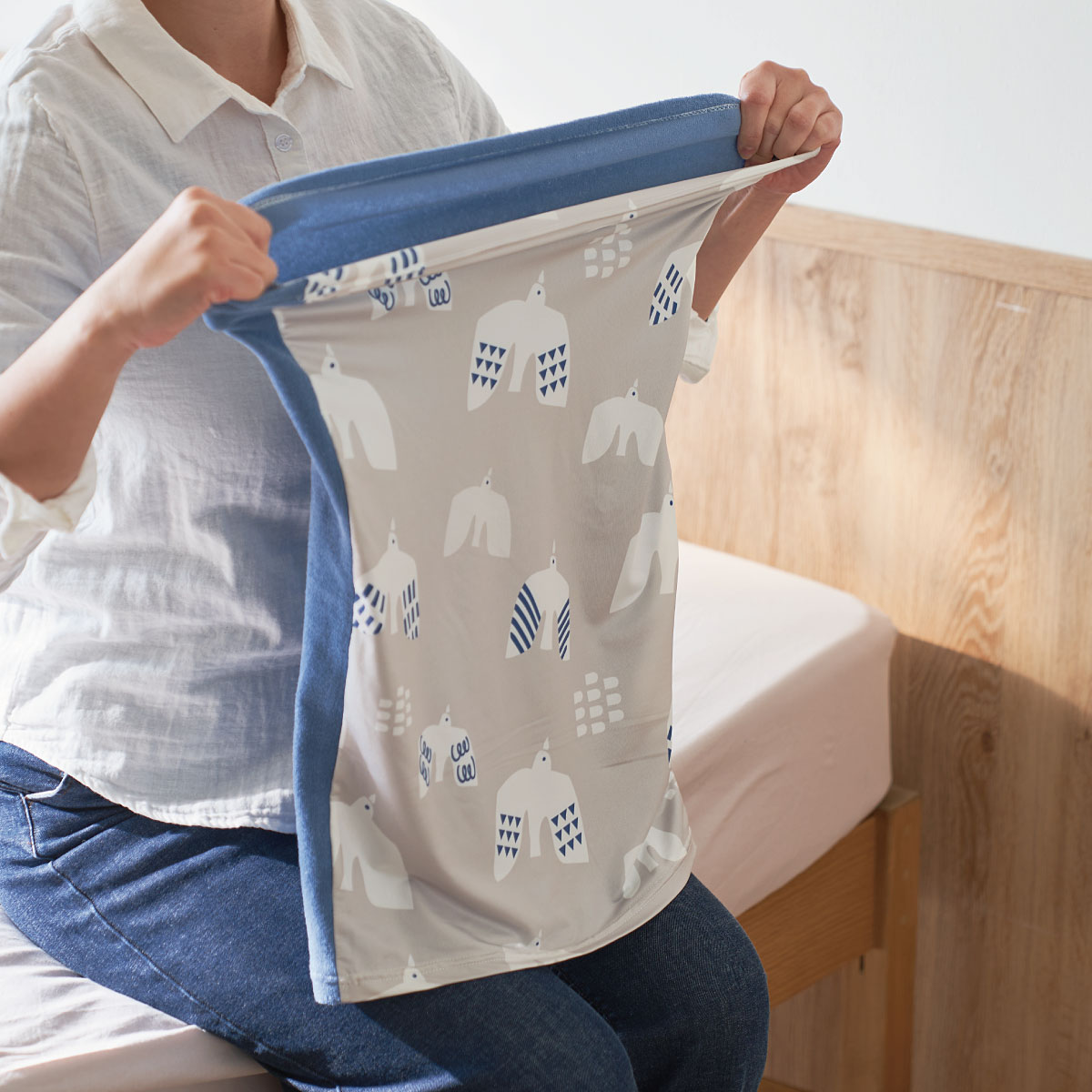 グレー(カモメ)裏面はブルーのパイル生地。