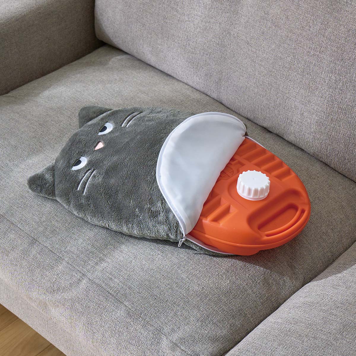 A (クロネコ)湯たんぽを入れやすいファスナー開閉。 ※湯たんぽ本体はついておりません。