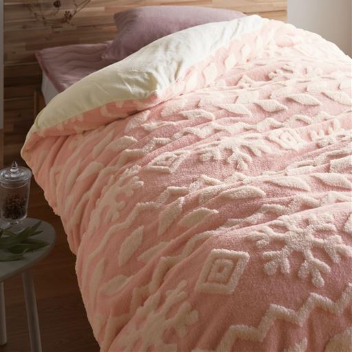 ピンク(雪柄)布団の柄が透けにくいほどよい厚み。