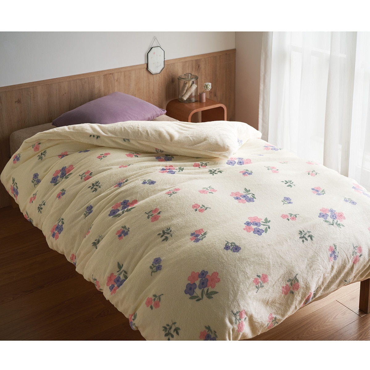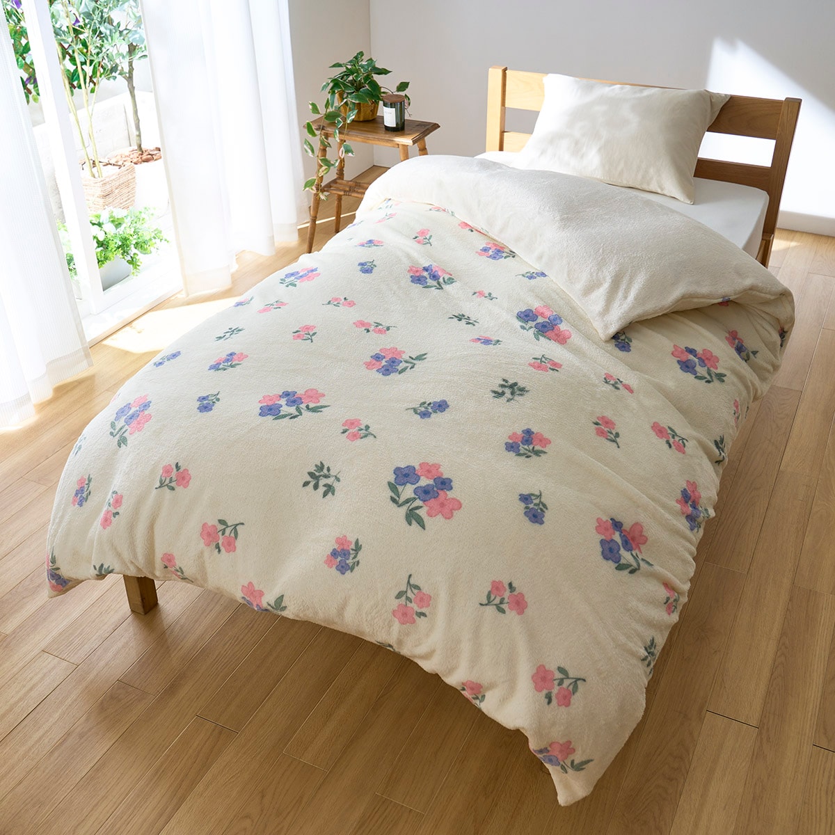 ふわっと軽くやさしく身体を包み込む、毛布素材のあったか掛け布団カバーです。やさしい色合いの花柄がお部屋のアクセントに。