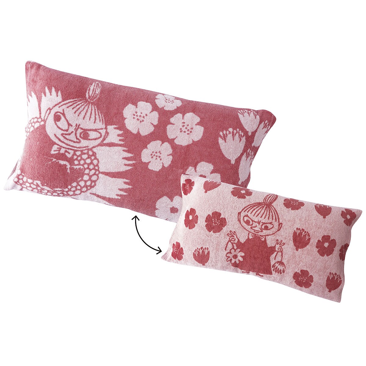 肌触りの良いパイル素材の枕カバー。伸び伸び素材だから変形枕にもぴったりフィット。表と裏で2つのデザインを楽しめます。ムーミンとリトルミイを各1枚セットでお届けします。