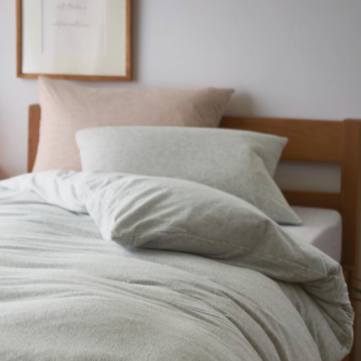 肌にやさしく寄り添う、綿100%天竺ニットの枕カバーです。やわらかな風合いと、通気性が良くサラッとした肌心地で、Tシャツや赤ちゃんの肌着などにも使われている素材だから肌になじんで快適。軽くて乾きやすいのも魅力です。ご家庭の洗濯機で気軽に洗えるので、清潔にお使いいただけます。
