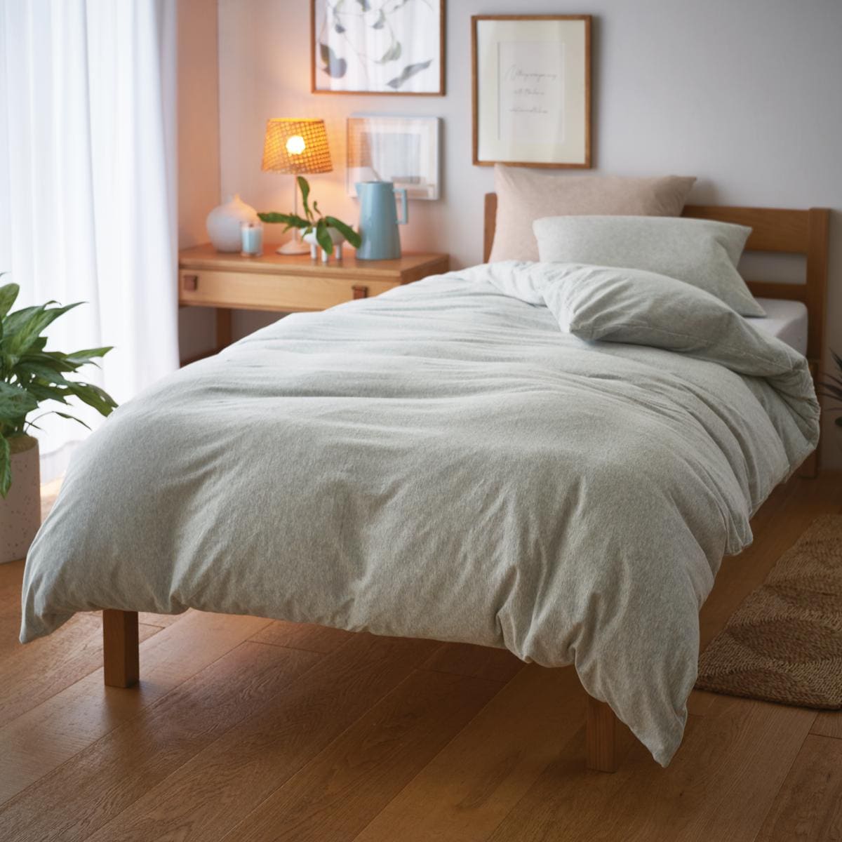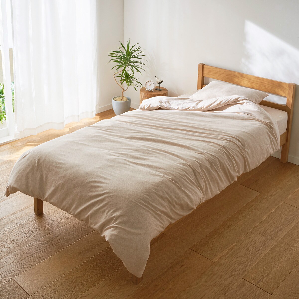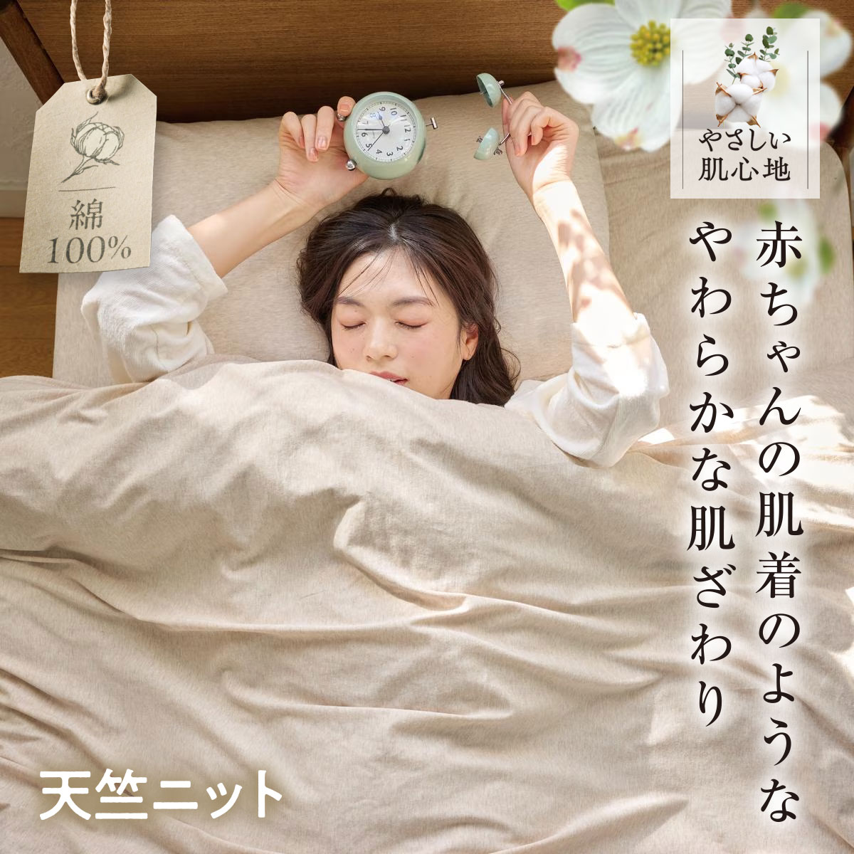 春眠暁を覚えず。目覚ましが鳴ったあとの5分まどろむ至福の時。ときめく肌ざわりとお日様の匂いが二度寝を誘ってしまうかも。