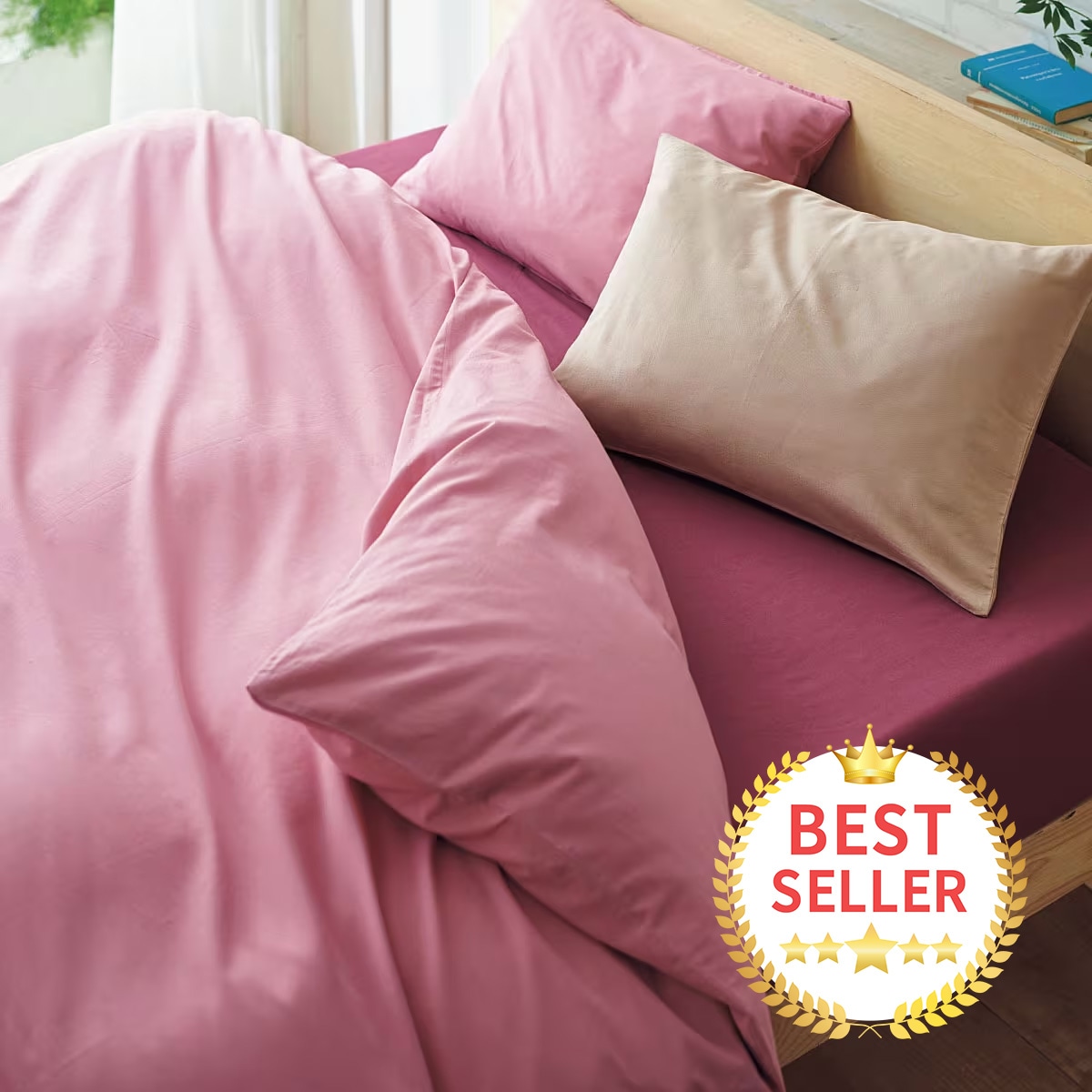 (左から) ローズピンク・オークベージュ肌ざわりの良い綿100%ツイル生地の枕カバーです。