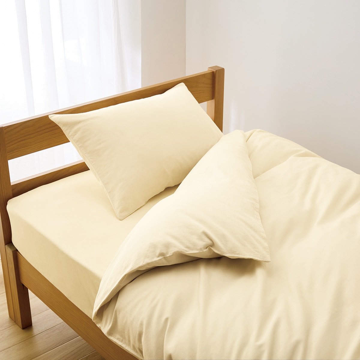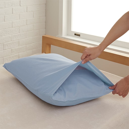 枕カバーは端まできちんと覆えるかぶせ式。ファスナーが顔に当たることがないので、心地よく眠れます。