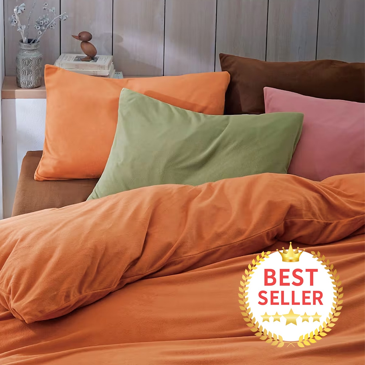 (左上から) アプリコット・コーヒーブラウン・オリーブグリーン・ローズピンクふんわりかる~いマイクロフリースの枕カバーです。