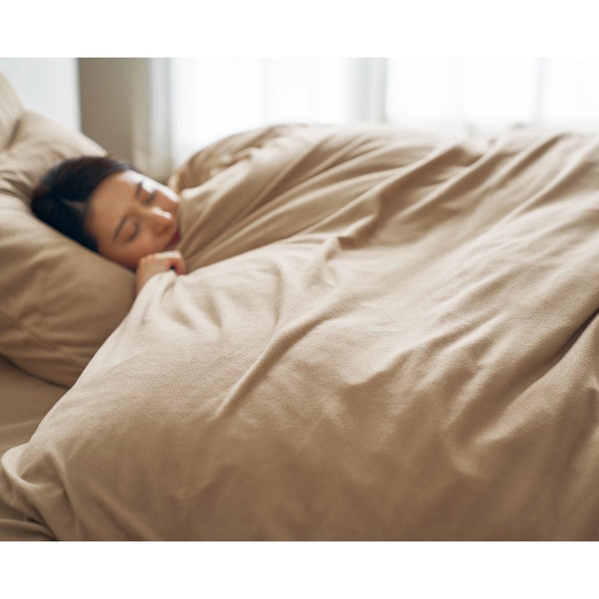 毛布生地のように厚くはないのに、あたたかで軽いのも特長。織生地のカバーと大きく重さが変わりません。