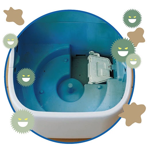 カビや雑菌の温床になりやすい加湿器のタンク。給水管などをヨウ素がしっかり除菌!除菌剤1包をタンクに入れておけば約1カ月間除菌。使用中のイヤなニオイも抑制してくれます。