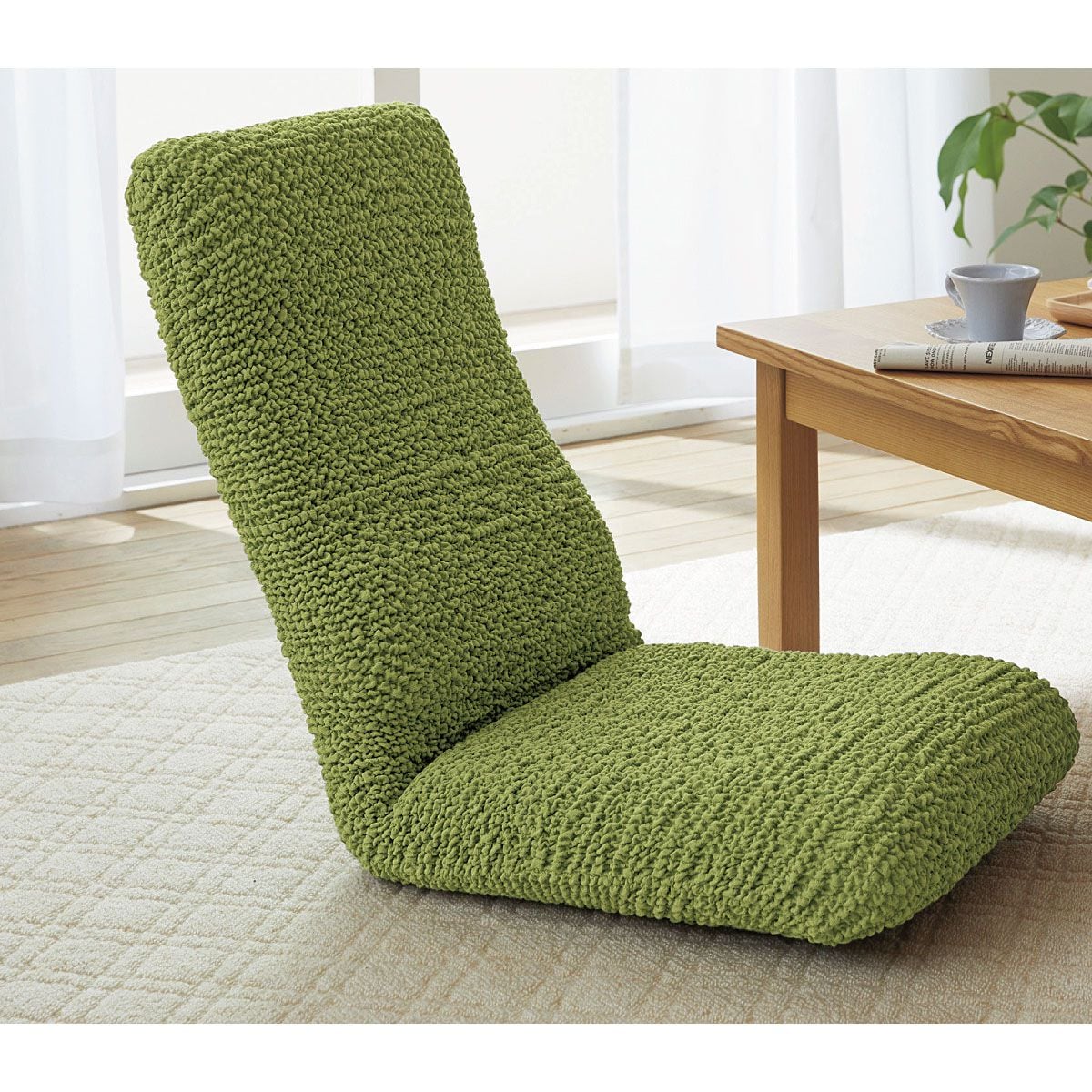 パウダーグリーン(座椅子カバーM)座椅子の形に合わせてぴったりフィット。