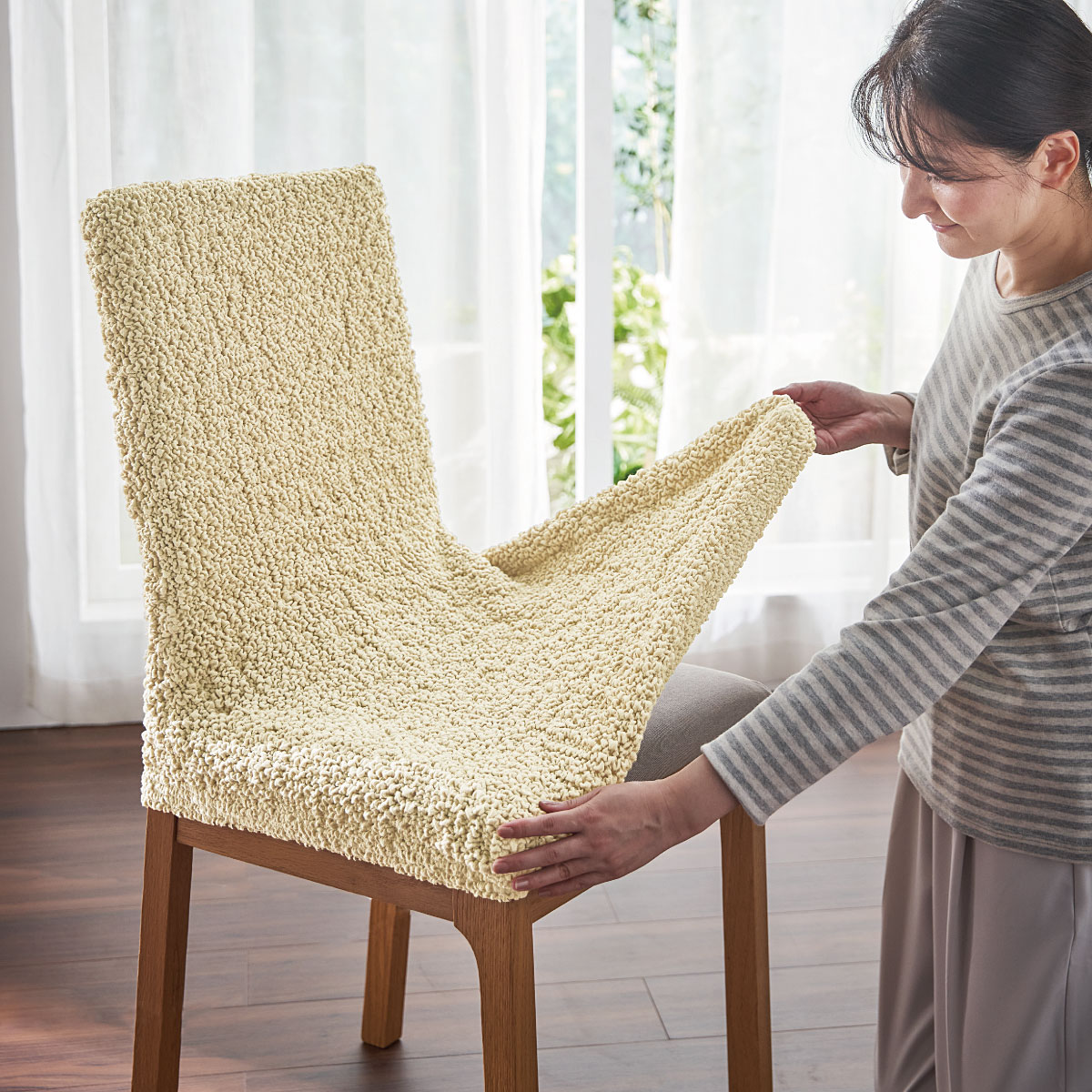 座椅子の上にかぶせるだけで簡単模様替え