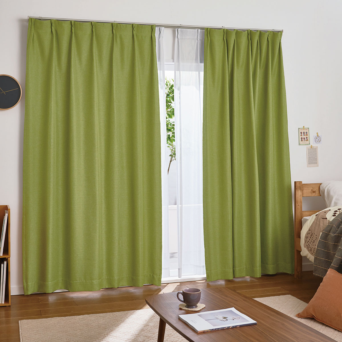 ざっくりとした風合いのカーテン生地でインテリアに合わせやすい。※グリーンのみ販売