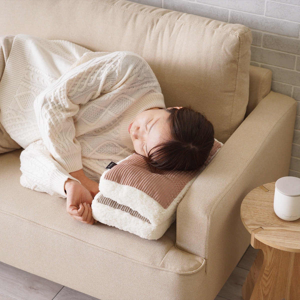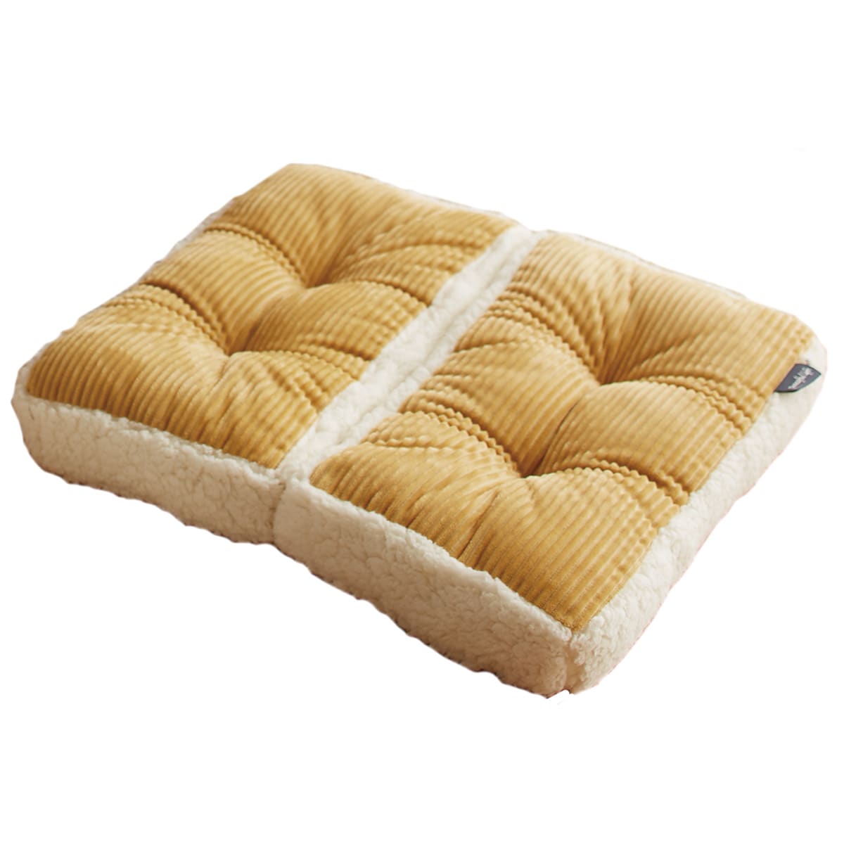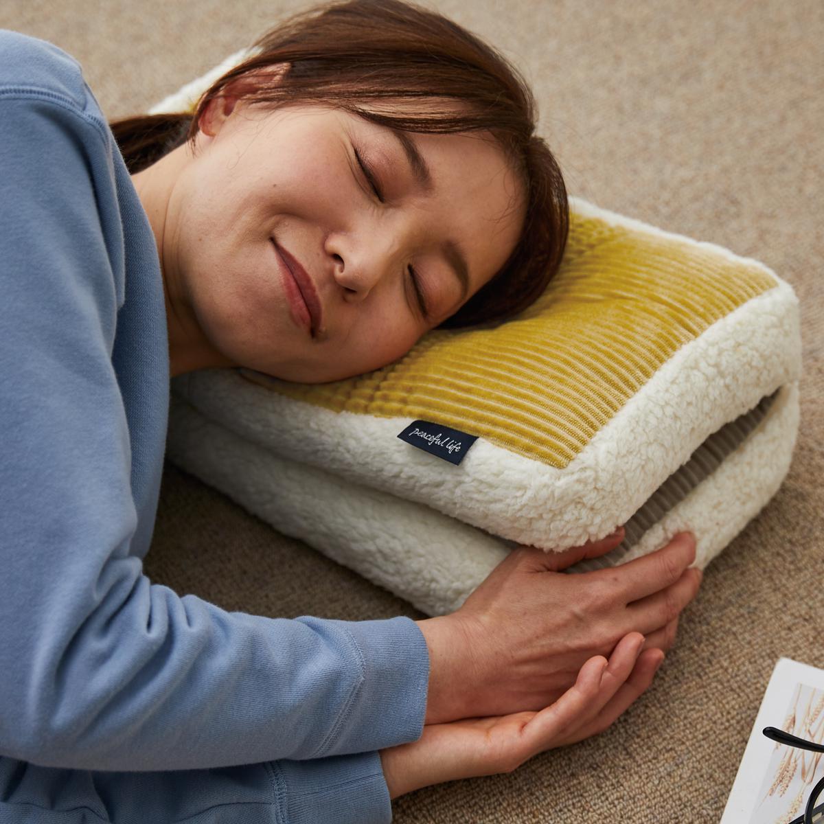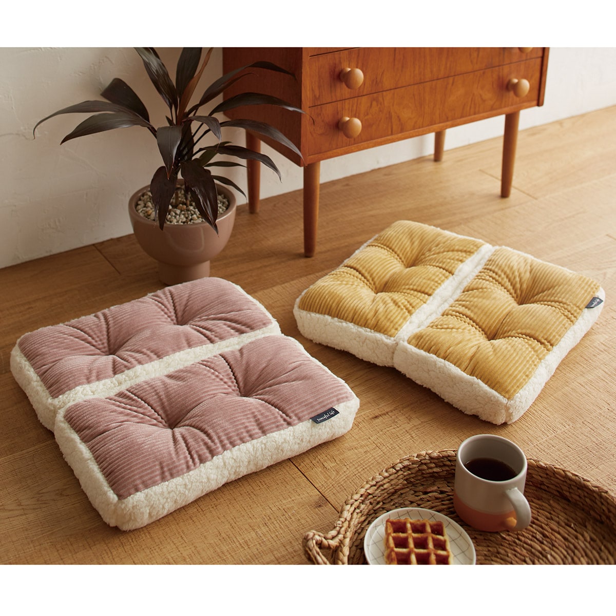 そのまま使えばソファシートや座布団に、たためば背当てや枕にとマルチに活躍します。コーデュロイとシープボアのあたたかな肌ざわりにも癒されます。二つ折りにすれば厚めのクッションになるので、うたたね枕や肘置きとしても使えます。