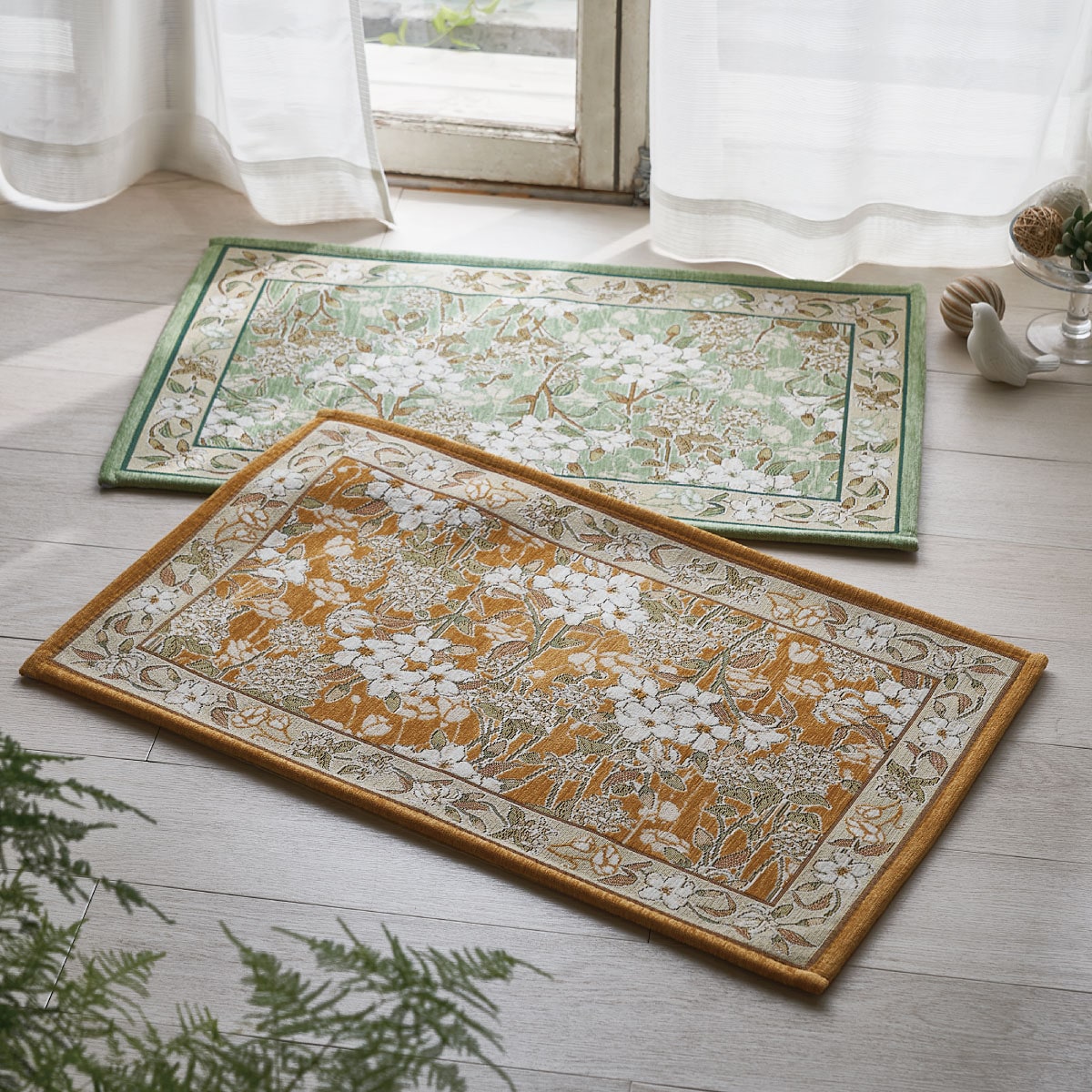 (上から) グリーン・オレンジ(横80×縦50cm)華やかな玄関でお出迎え! ゴブラン織り風玄関マットです。
