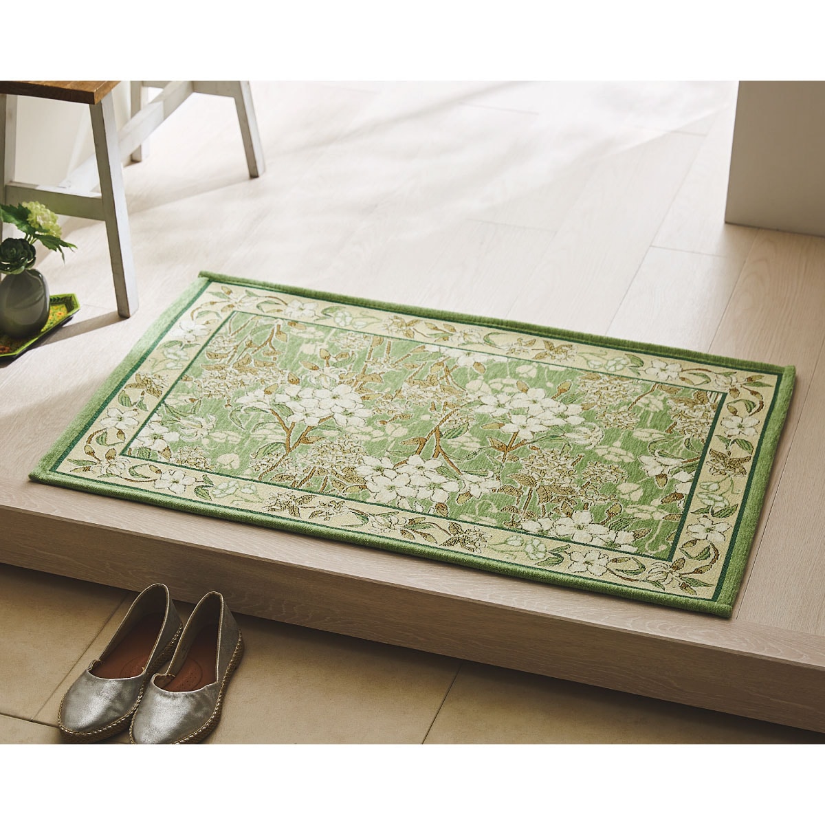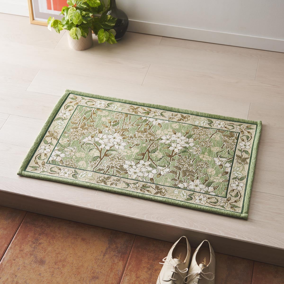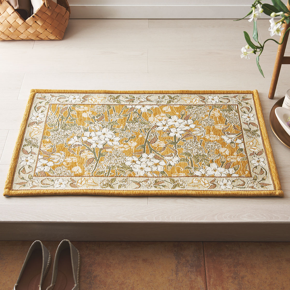繊細で美しい柄が上品な空間を演出する、ゴブラン織り風の玄関マットです。いつもの玄関の印象を変えたい方におすすめです。