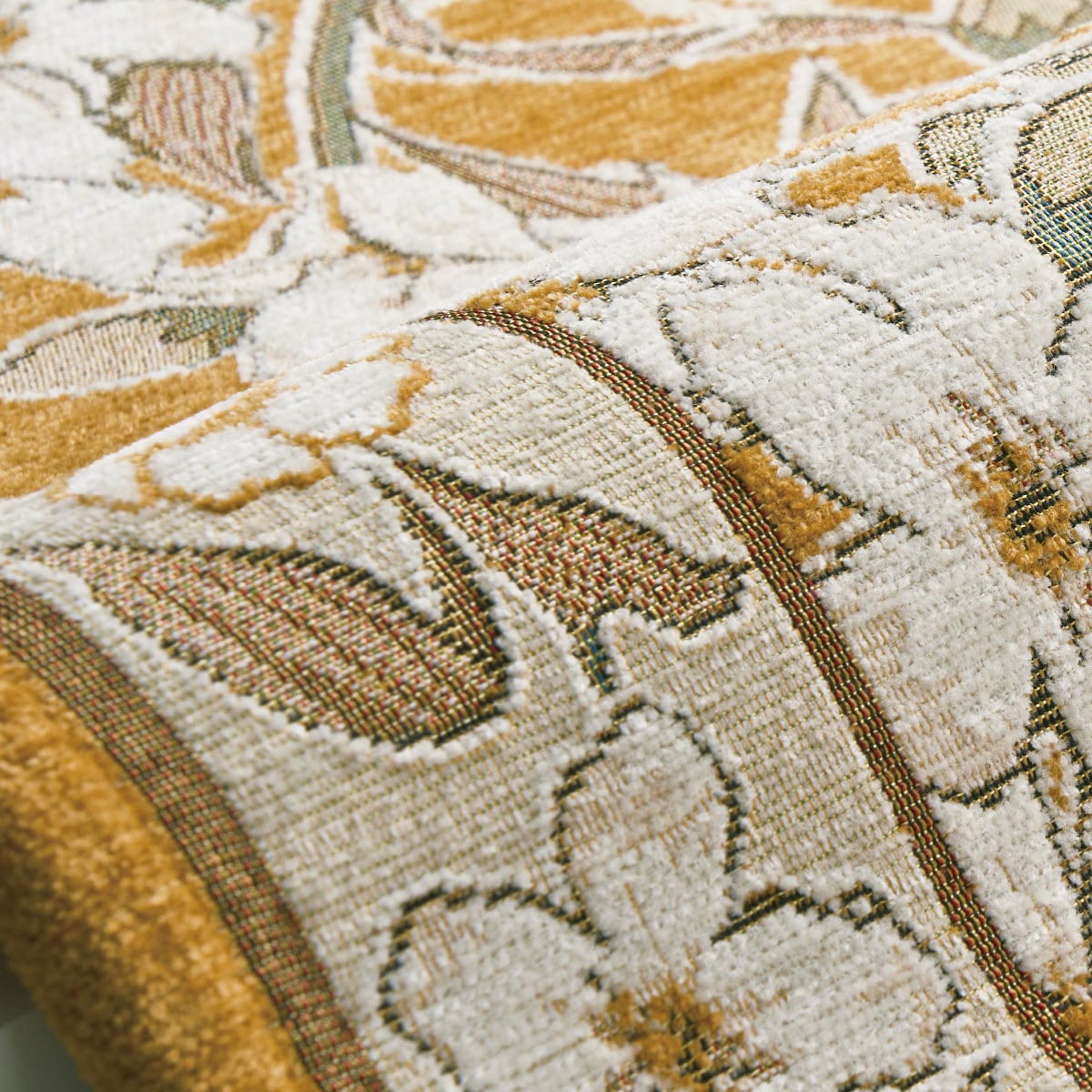 生地拡大(オレンジ)繊細なデザインを織りで表現。
