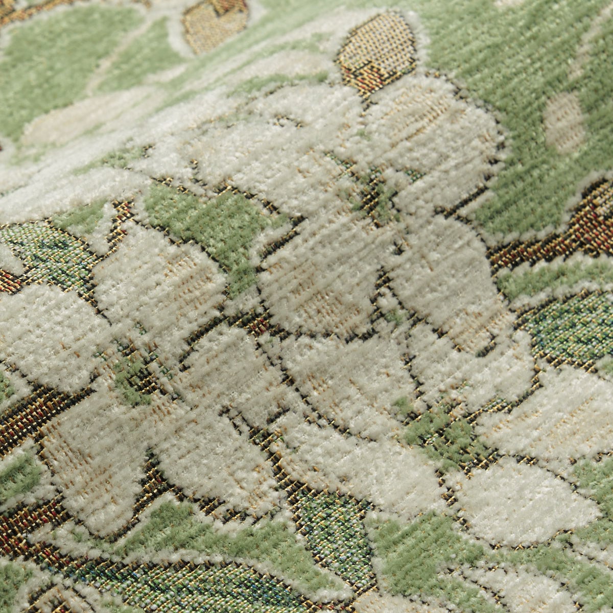 生地拡大(グリーン)絵画のタペストリーや室内宝飾品にも使用されているゴブラン織り風に仕上げました。