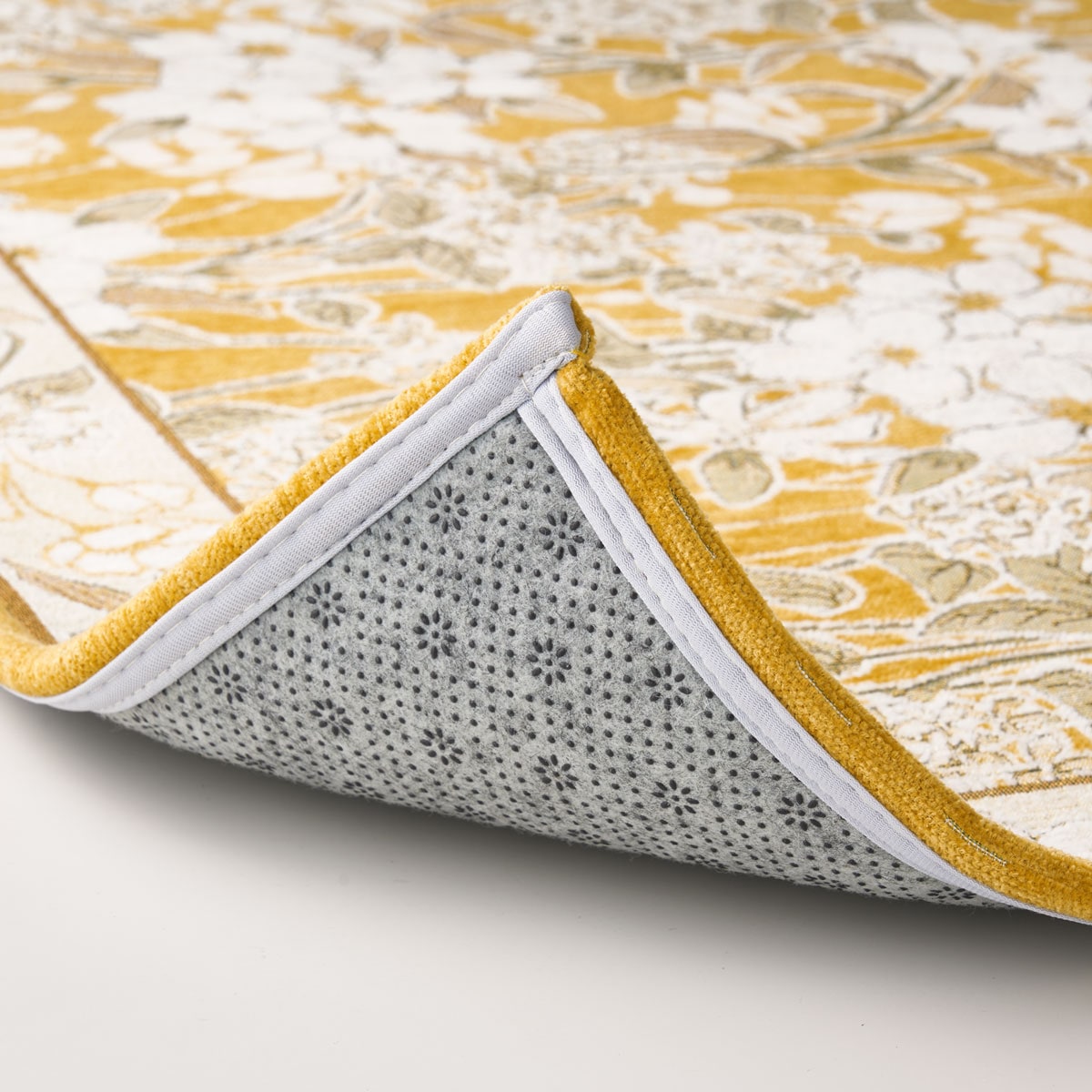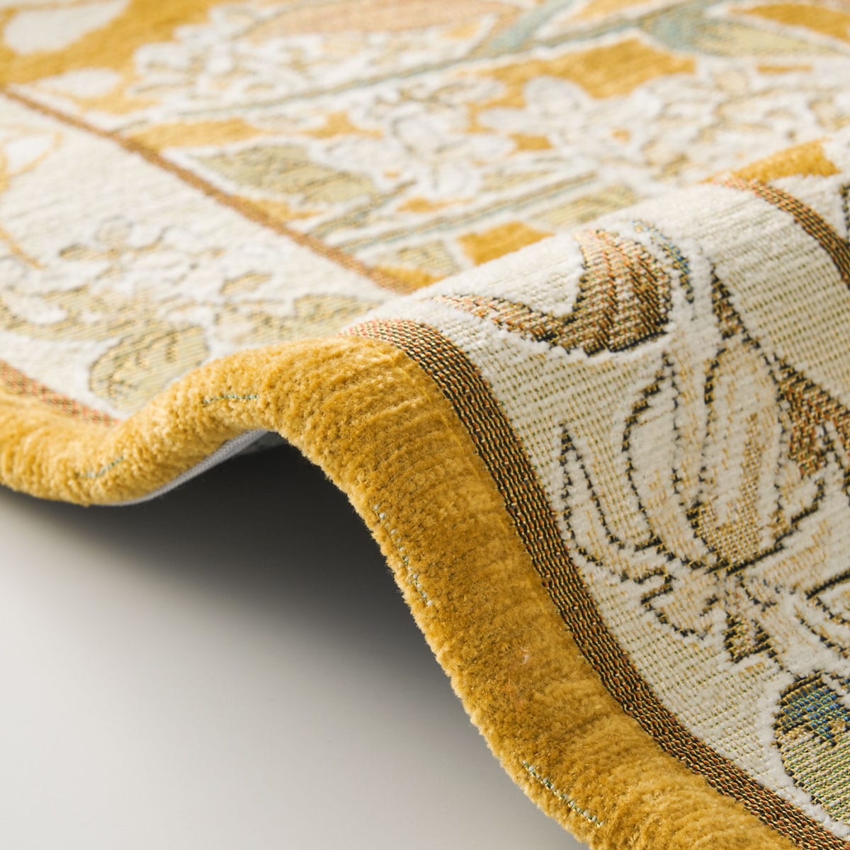 絵画のタペストリーや室内宝飾品にも使用されているゴブラン織り風に仕上げた玄関マットです。繊細で優美に表現された百合の柄が、いつもの玄関を上品な空間に演出します。パイル(毛足)がないため遊び毛が出にくく、ゴミも付着しにくいのでお手入れ簡単。高密度に織り上げているので耐久性にも優れています。汚れたらご家庭の洗濯機で気軽にお洗濯できるので、いつも清潔にお使いいただけます。