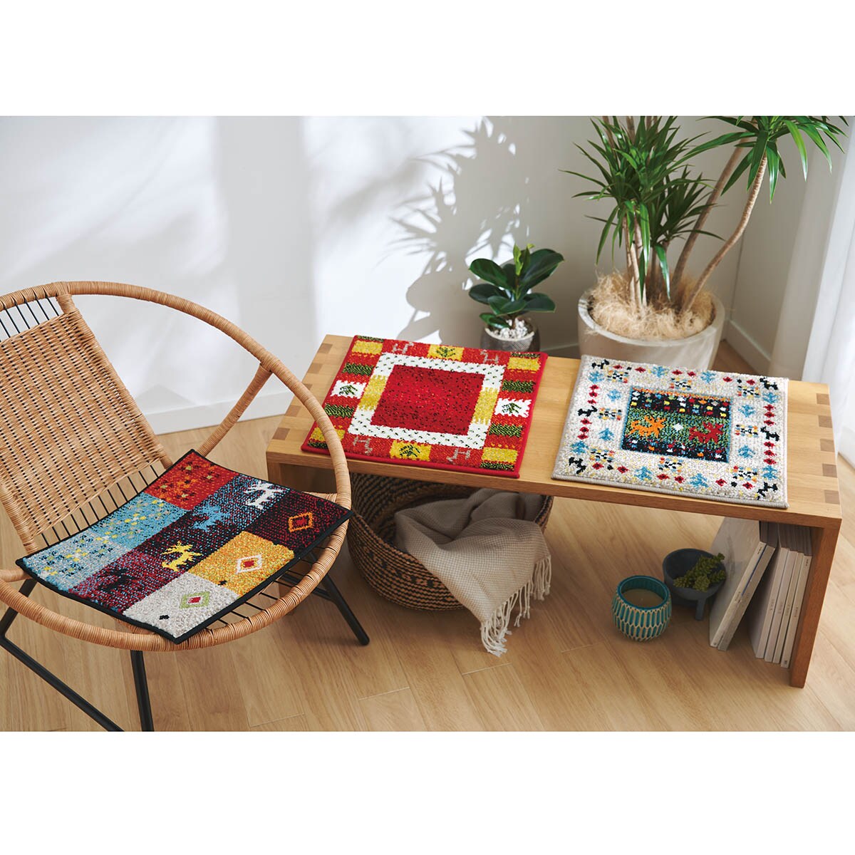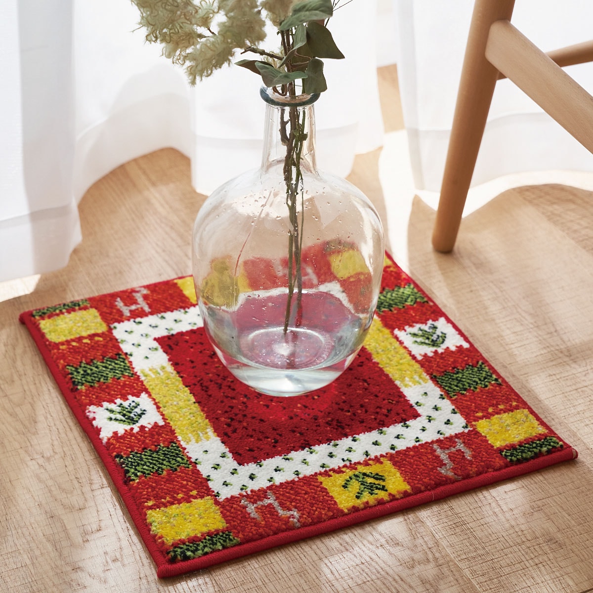 レッド系花瓶や観葉植物などのアクセントマットとしてもおすすめ。