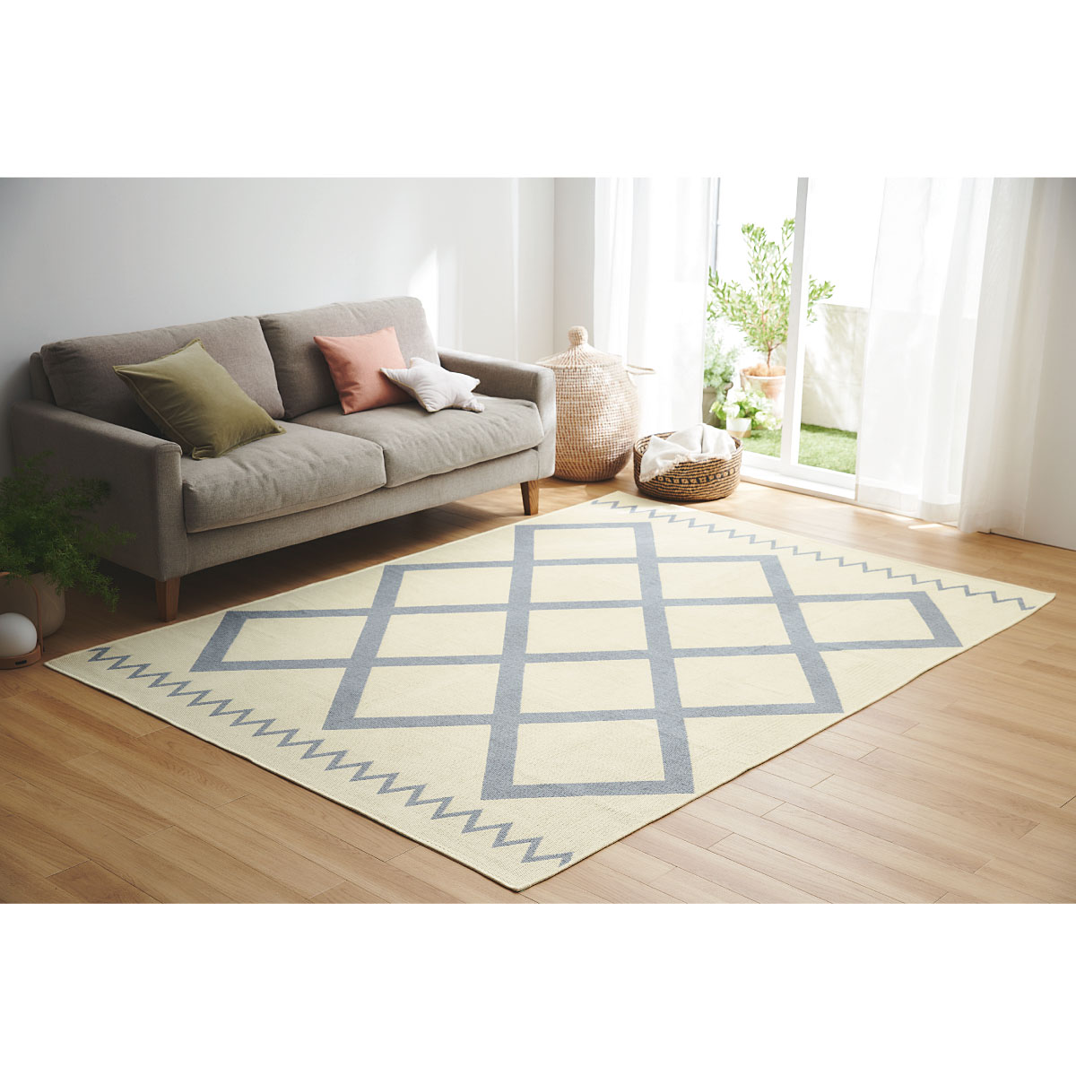 グレー(横240×縦176cm)素足に心地よい綿混素材を使用した、ベニワレン柄の平織りラグです。