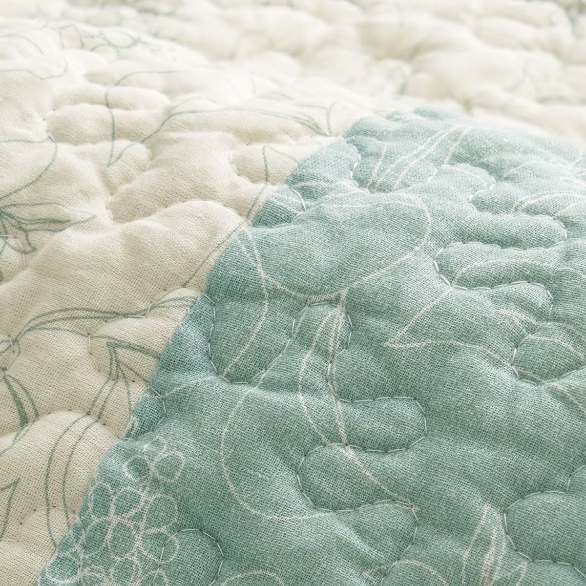 グリーン 3人掛け用(横150×縦48cm)繊細な花柄が美しい、水洗いキルトソファパッドです。