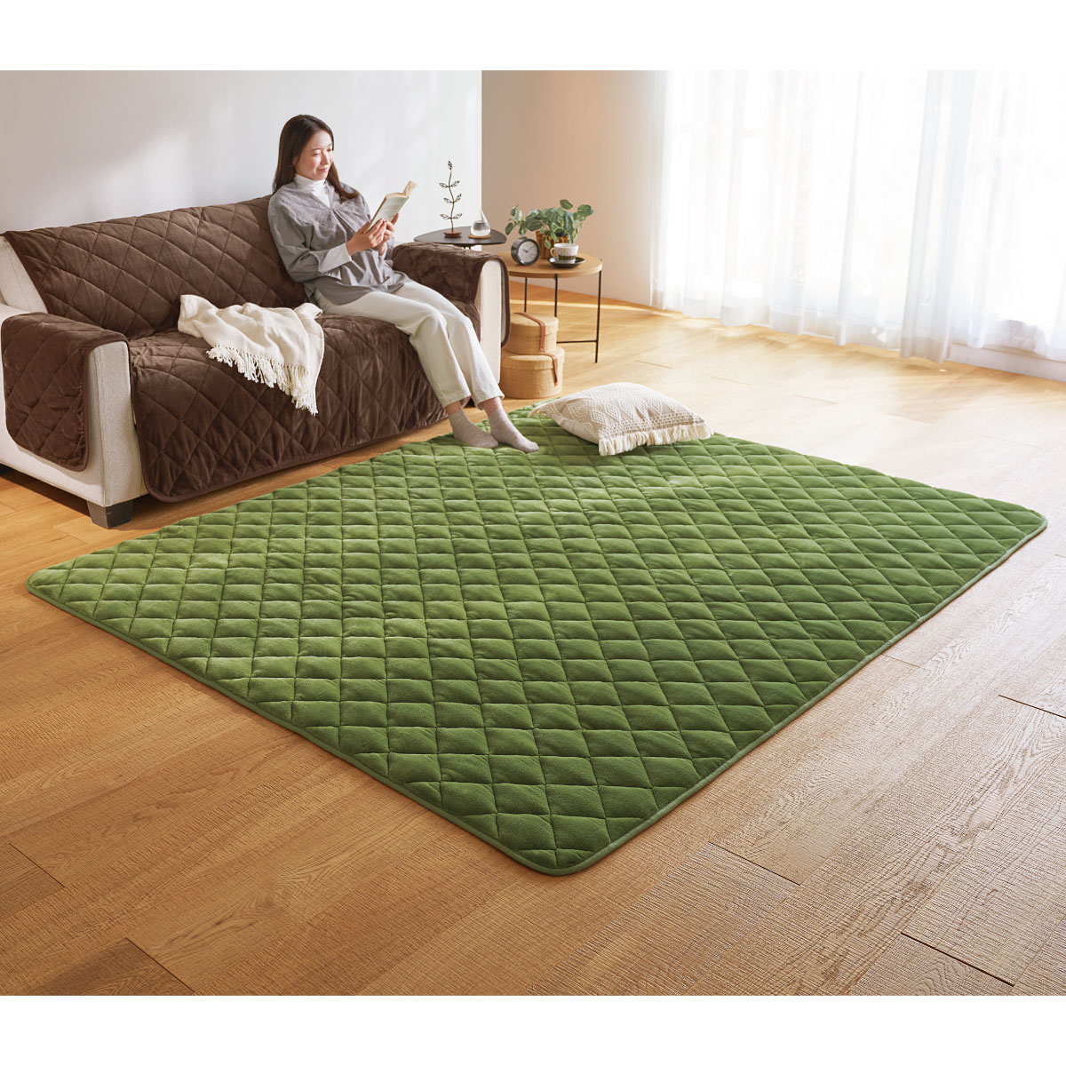 グリーン(横240×縦190cm) ※ソファカバーはCT-698を使用しています。底冷えを防いで節電対策にもおすすめのあったかラグです。