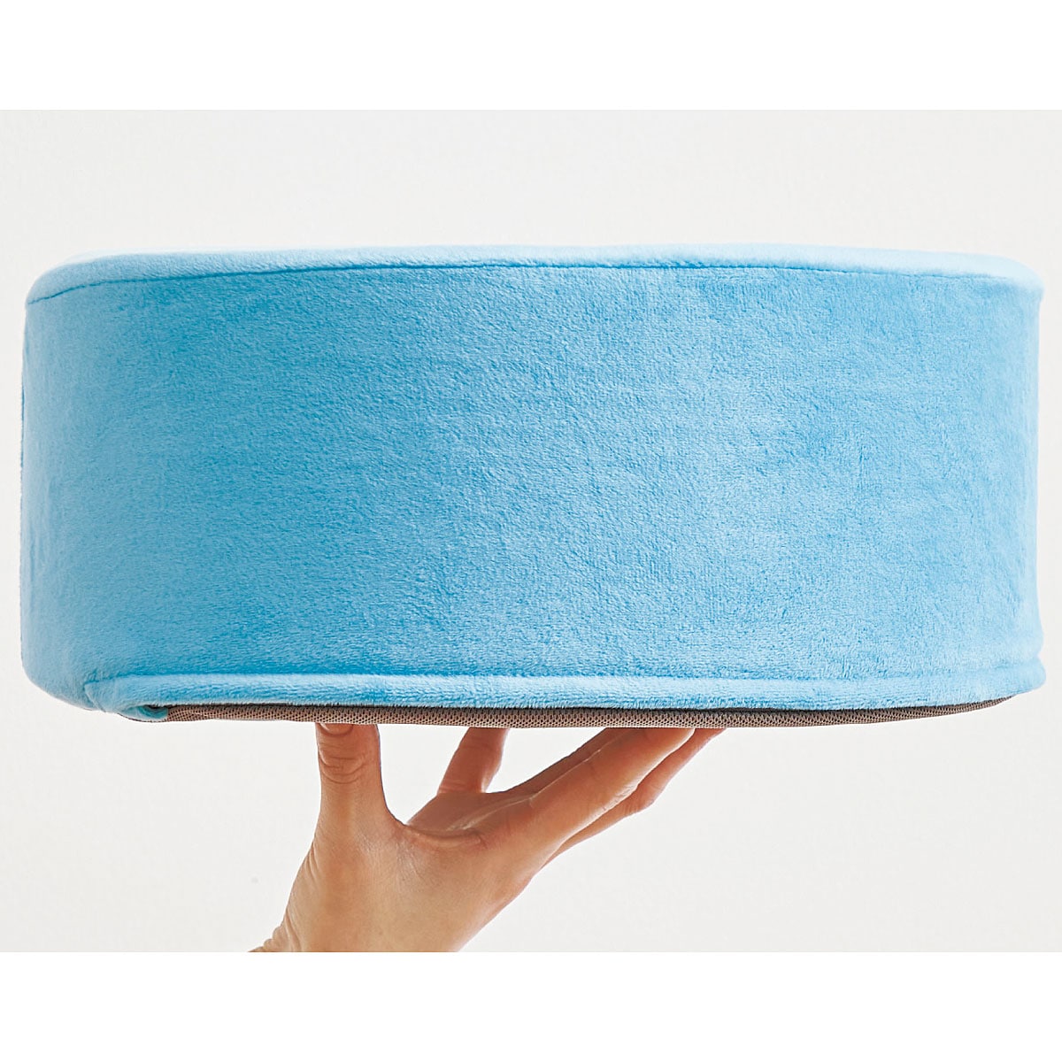 ミントブルー長時間座っても疲れにくいラウンドクッションです。