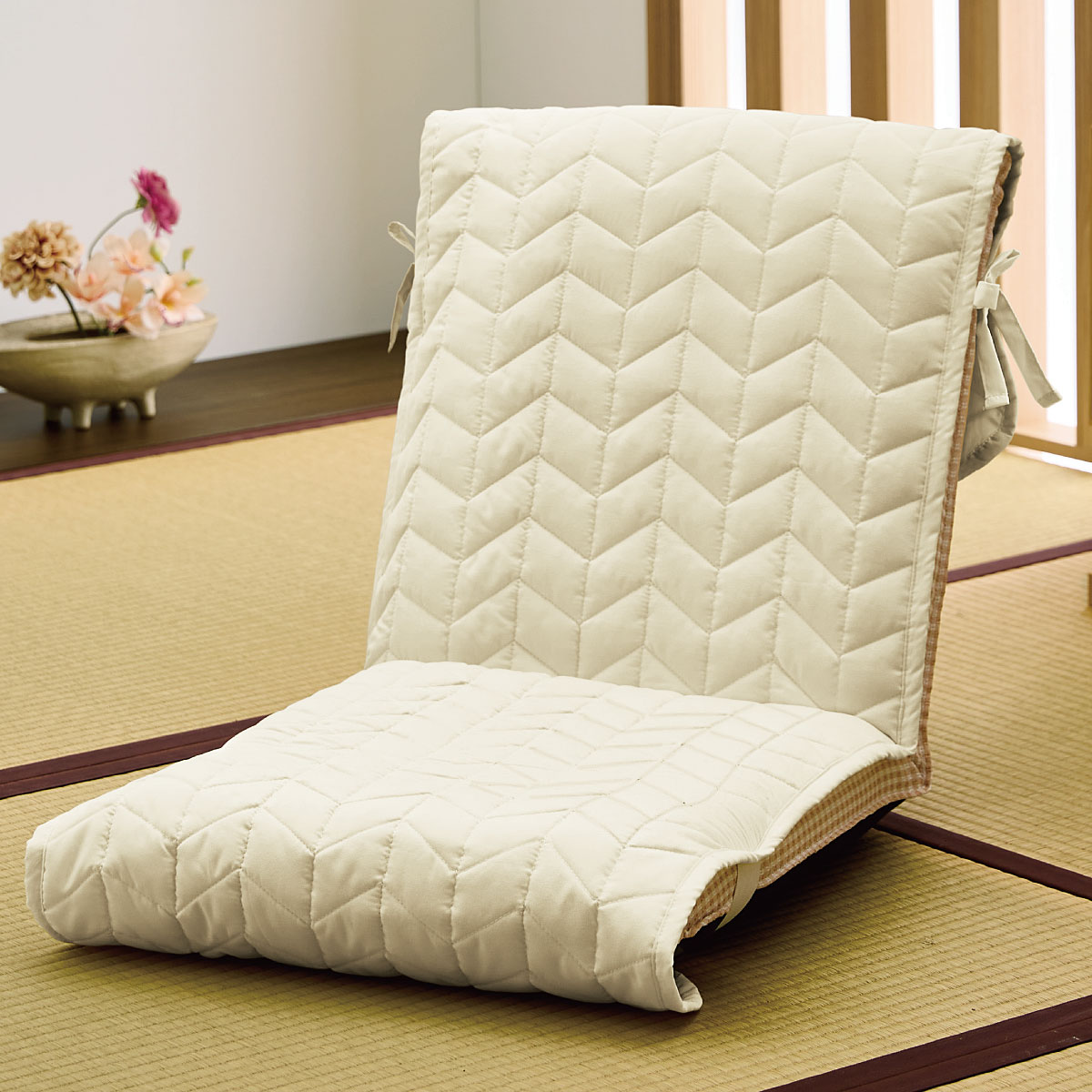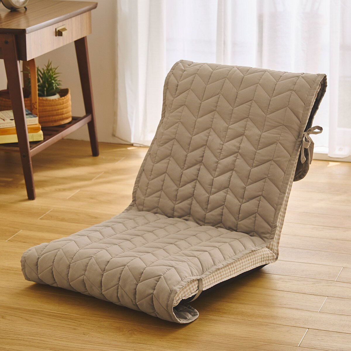 座り心地も見映えもアップ! 優しい色合いとなめらかな肌ざわりのふんわりキルトチェアカバーです。座椅子カバーとしても使えます。