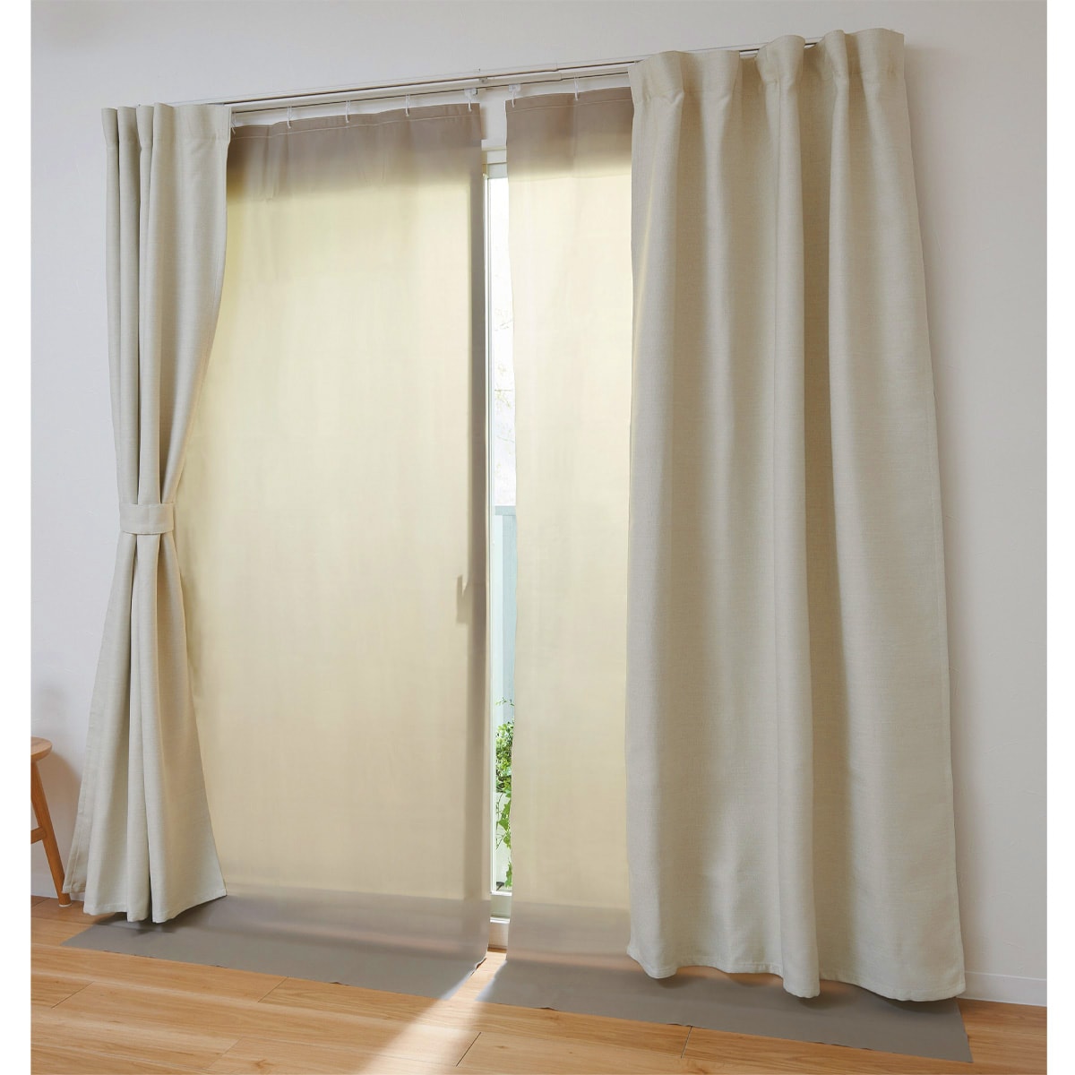 取り付けは2パターン! レースカーテンと一緒にカーテンフックに取り付けもできます。