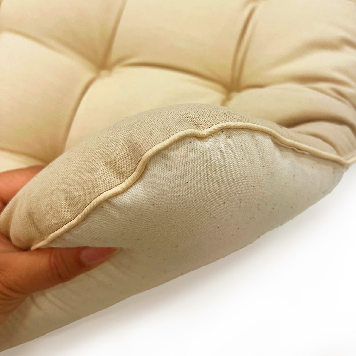 ■[側生地]綿100% [中材]ポリエステル100%・ウレタンフォーム ■[サイズ(約cm)]A/43×43 B/41×43 ■厚み(共通)/約7cm ●2ケ所ひも付き●手洗いOK●日本製