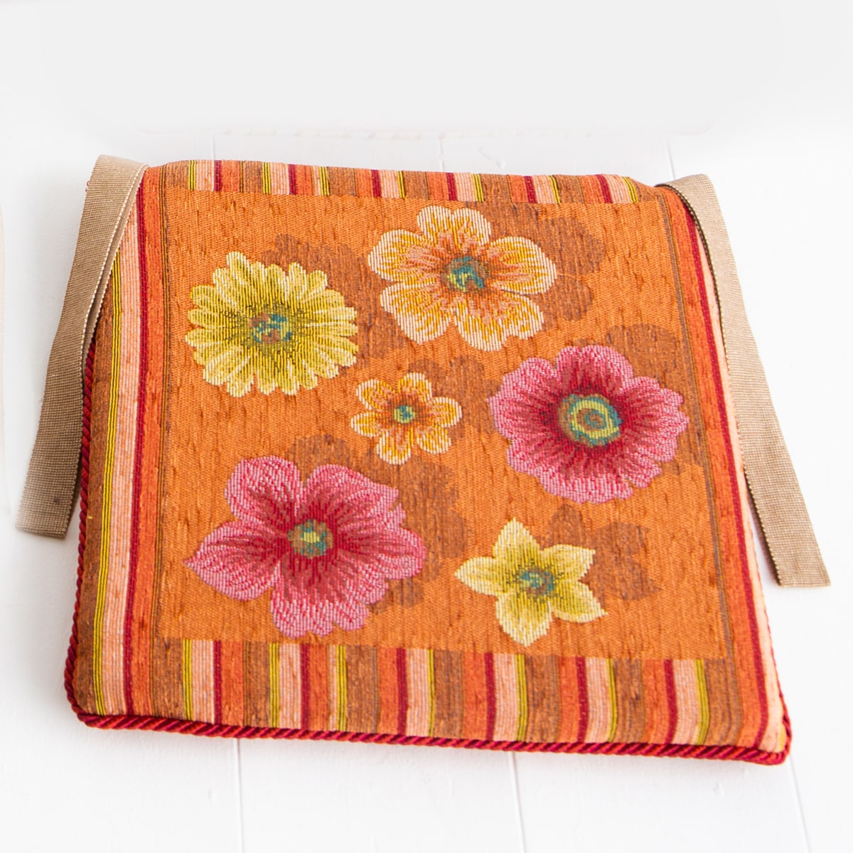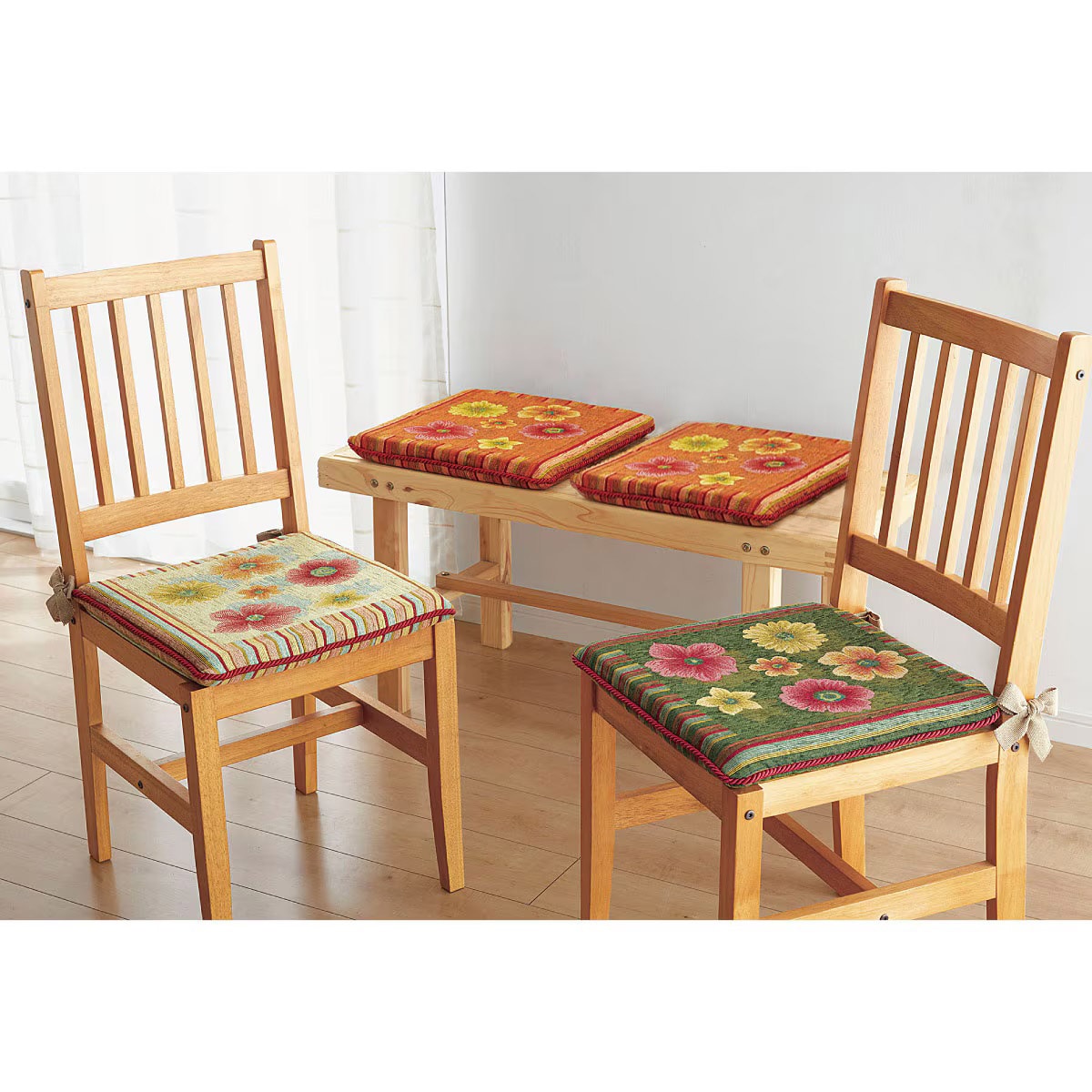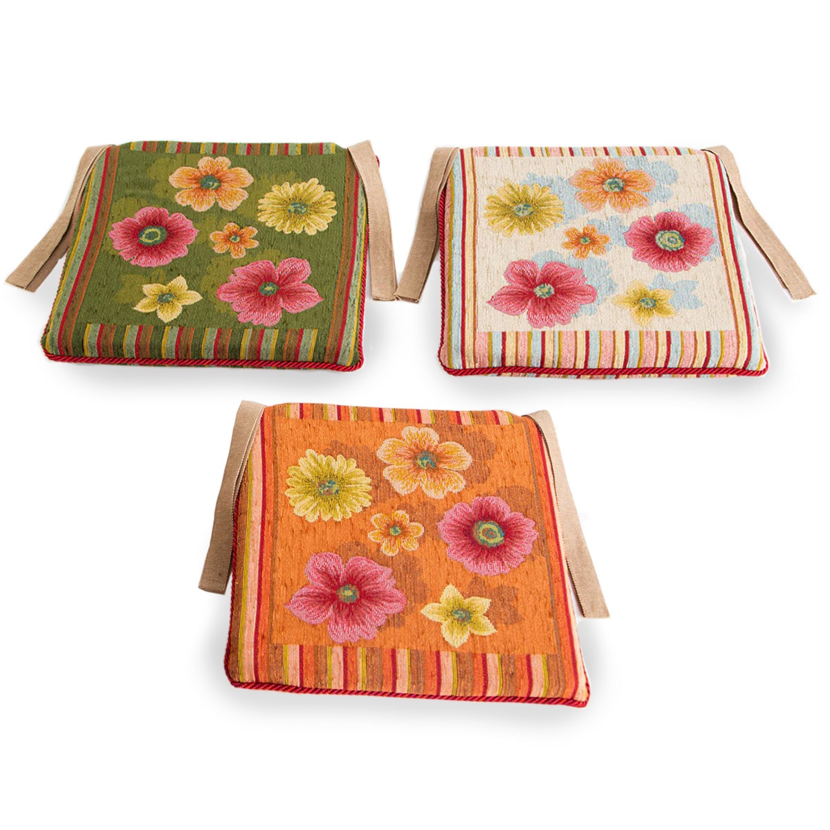 (上から) オレンジ×2・ベージュ・グリーン アネモネの花柄が美しい、イタリア製チェアパッドです。