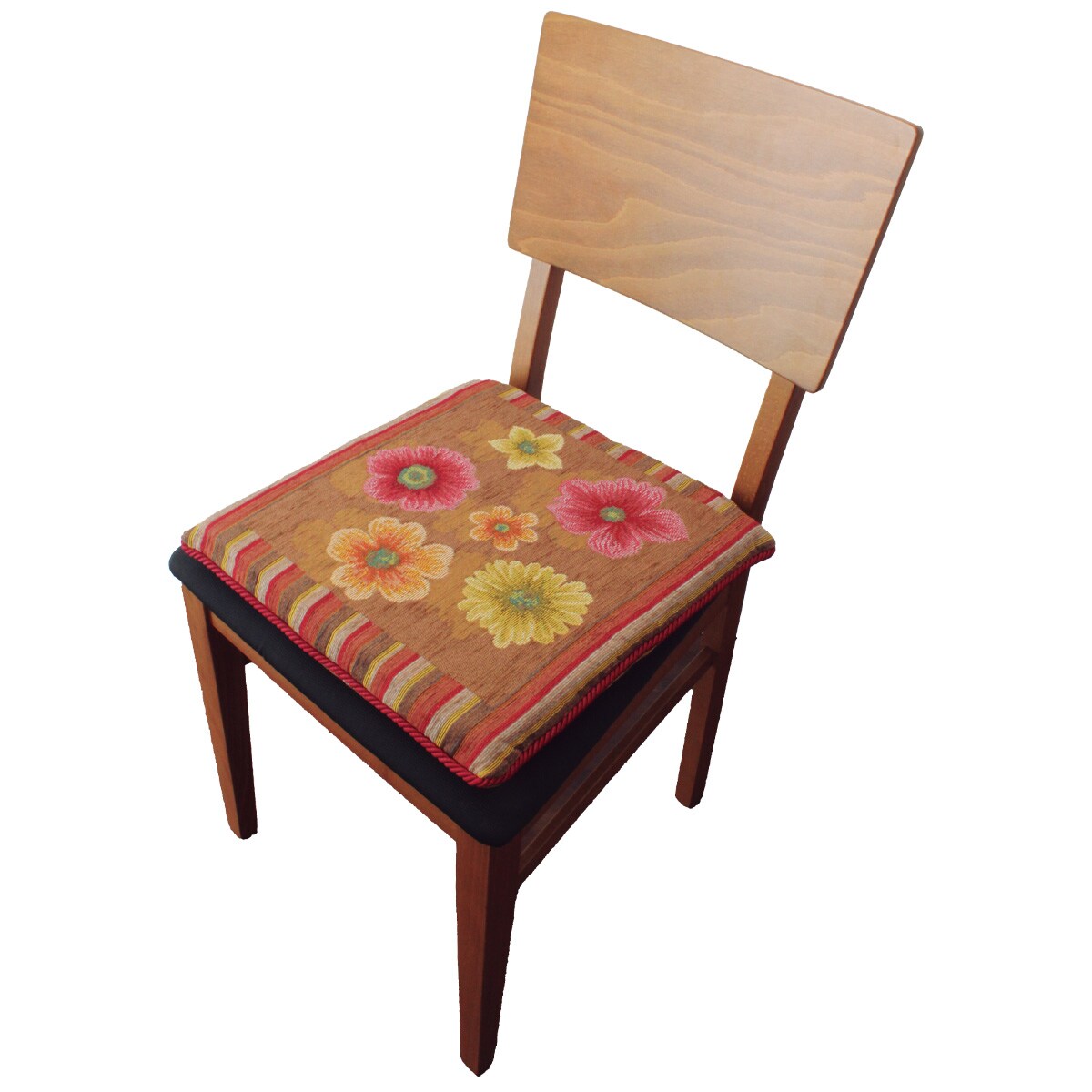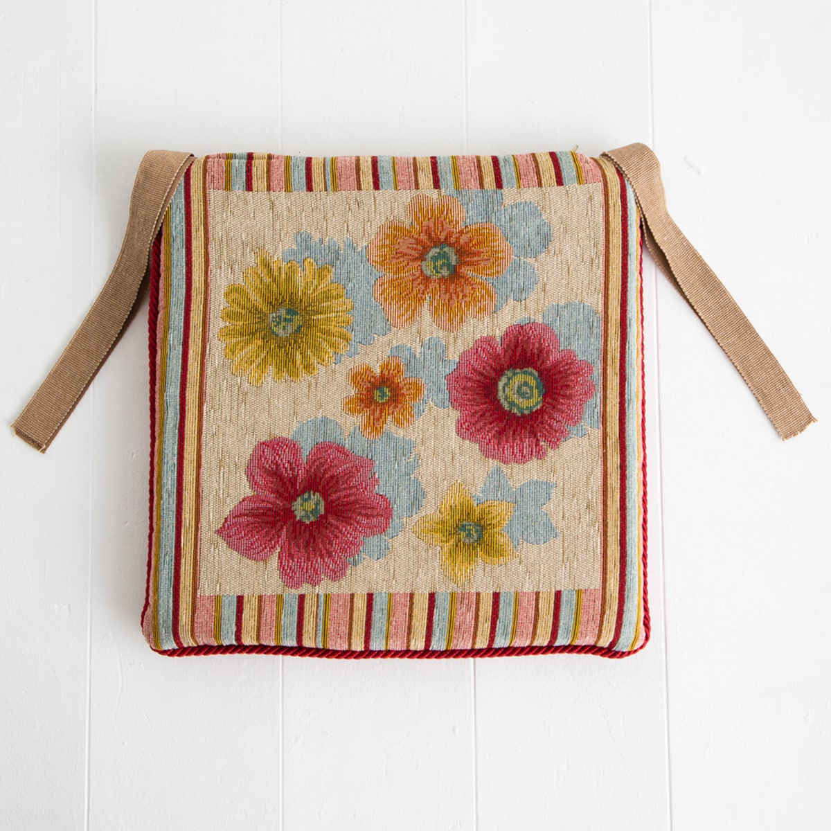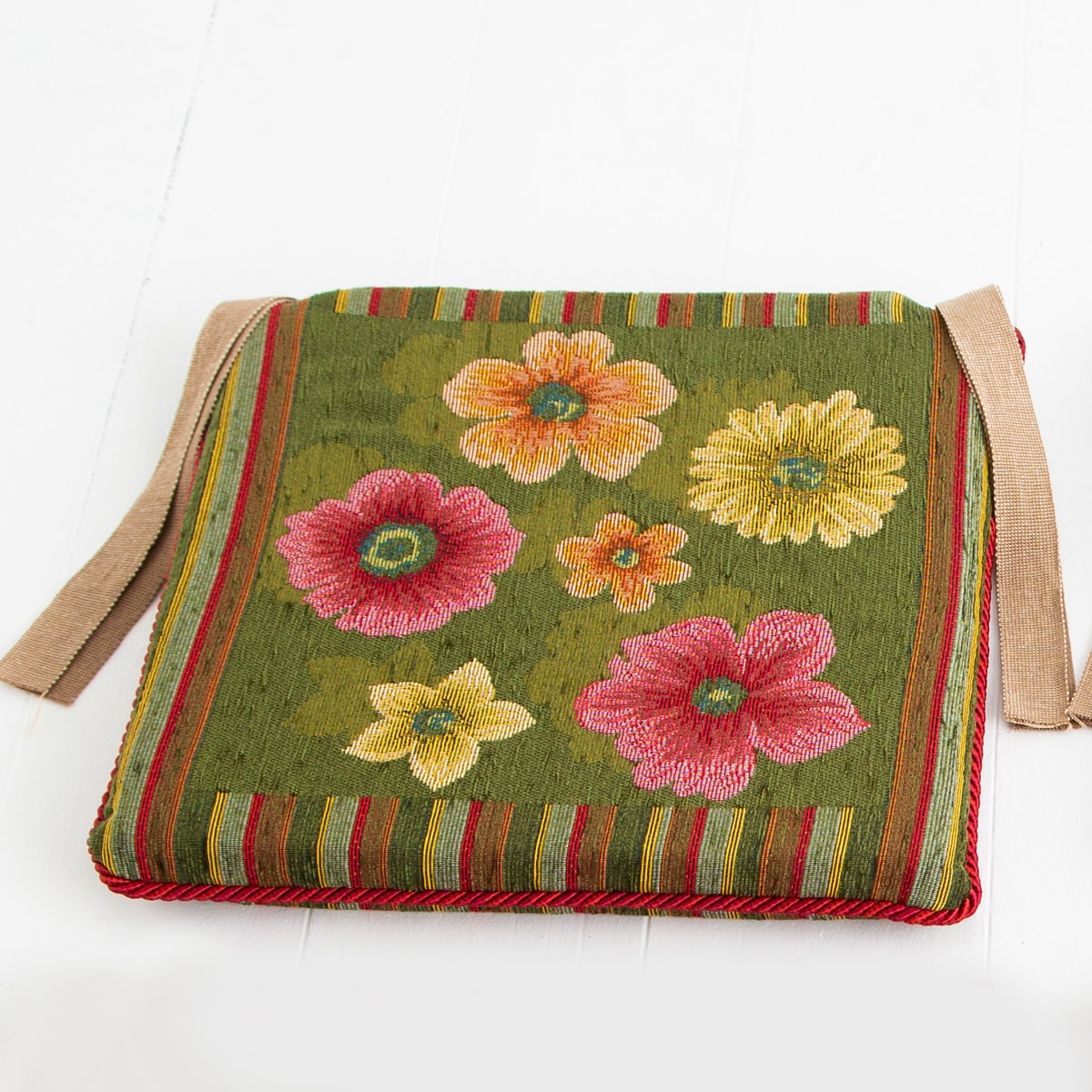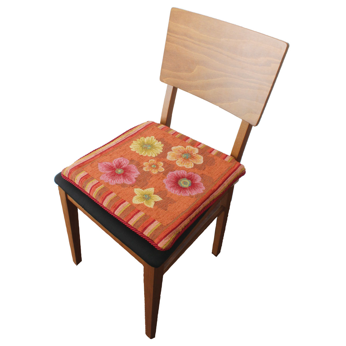 (上から) オレンジ×2・ベージュ・グリーン アネモネの花柄が美しい、イタリア製チェアパッドです。