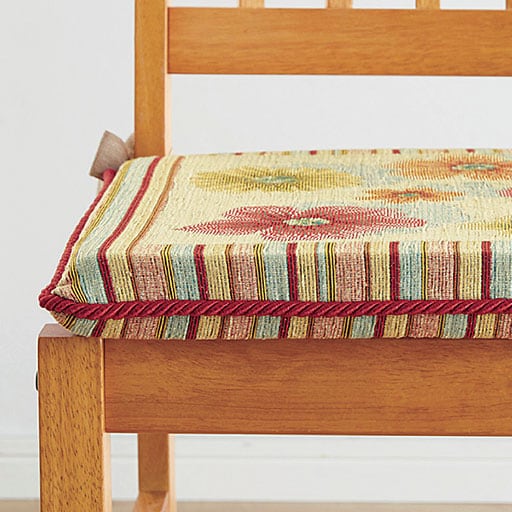 ■[カバー(側生地)]ポリエステル45%アクリル35% 綿15% その他5% [中身]ポリウレタン100% ■厚み/約4cm ▼商品によって柄の出方が多少異なります。 ▼柄が反転する場合があります。●2ケ所ひも付き ●カバーはファスナー式 ●両面同柄です ●洗濯機OK(ネット使用)(カバーのみ)●イタリア製