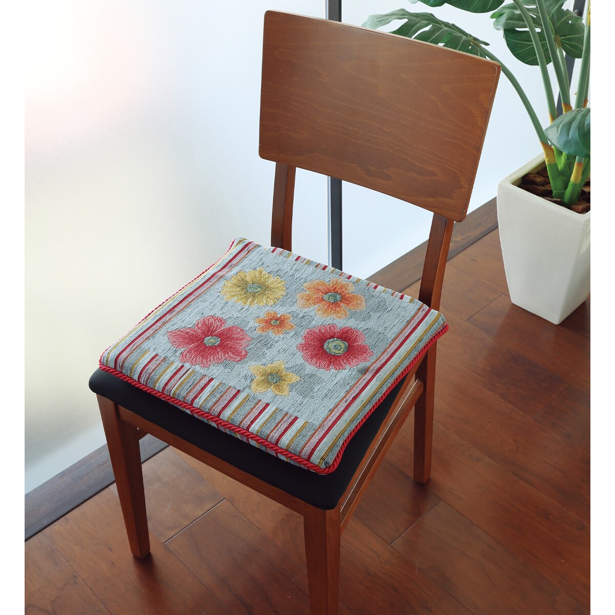 イタリアのベルガモ近郊にある1968年創業の老舗ファブリックメーカー「FINI-COP(フィニコップ)」社が手掛けた、おしゃれなチェアパッドです。上品な光沢のあるシェニール糸を使い、細やかなグラデーションにこだわって贅沢に織り上げられた、彩り豊かなイタリアンデザインが魅力。織りで描かれた美しいアネモネの花柄が、ダイニング・食卓まわりをおしゃれな空間に演出してくれます。約4cmのほどよい厚みでクッション性もあり、やわらかな肌ざわり。カバーは汚れても取り外して洗濯機で丸洗いできるので、清潔にお使いいただけます。