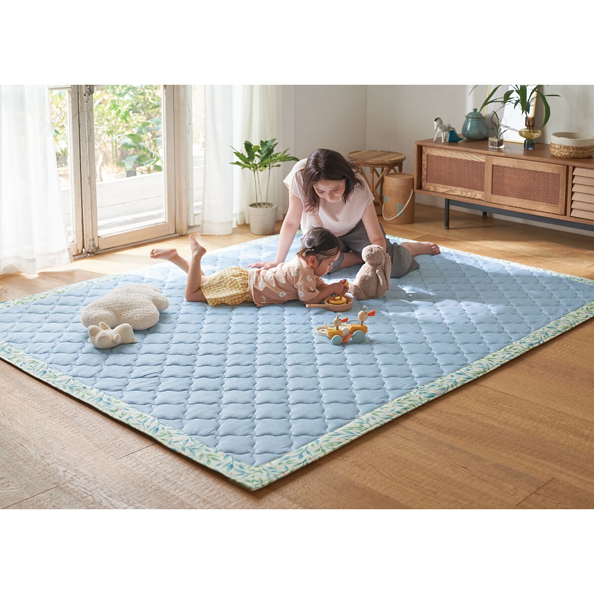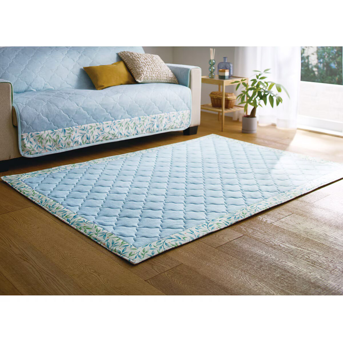 ブルー(横230×縦185cm)家族が集まるリビングに! スマートドライ®プラスクールのひんやりキルトラグです。